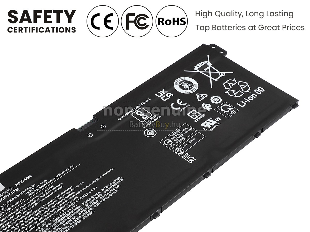 - 3 A Acer SWIFT GO 16 SFG16-71-50P7 akku 1:1 arányban lett tervezve, és mindenben megegyezik az eredeti akkumulátorral, így 100%-os kompatibilitást biztosít. Eredeti áramkör kialakítással, független védelmi áramkörrel, amely védelmet nyújt túltöltés, túlterhelés, túláram, magas hőmérséklet és rövidzárlat esetén.