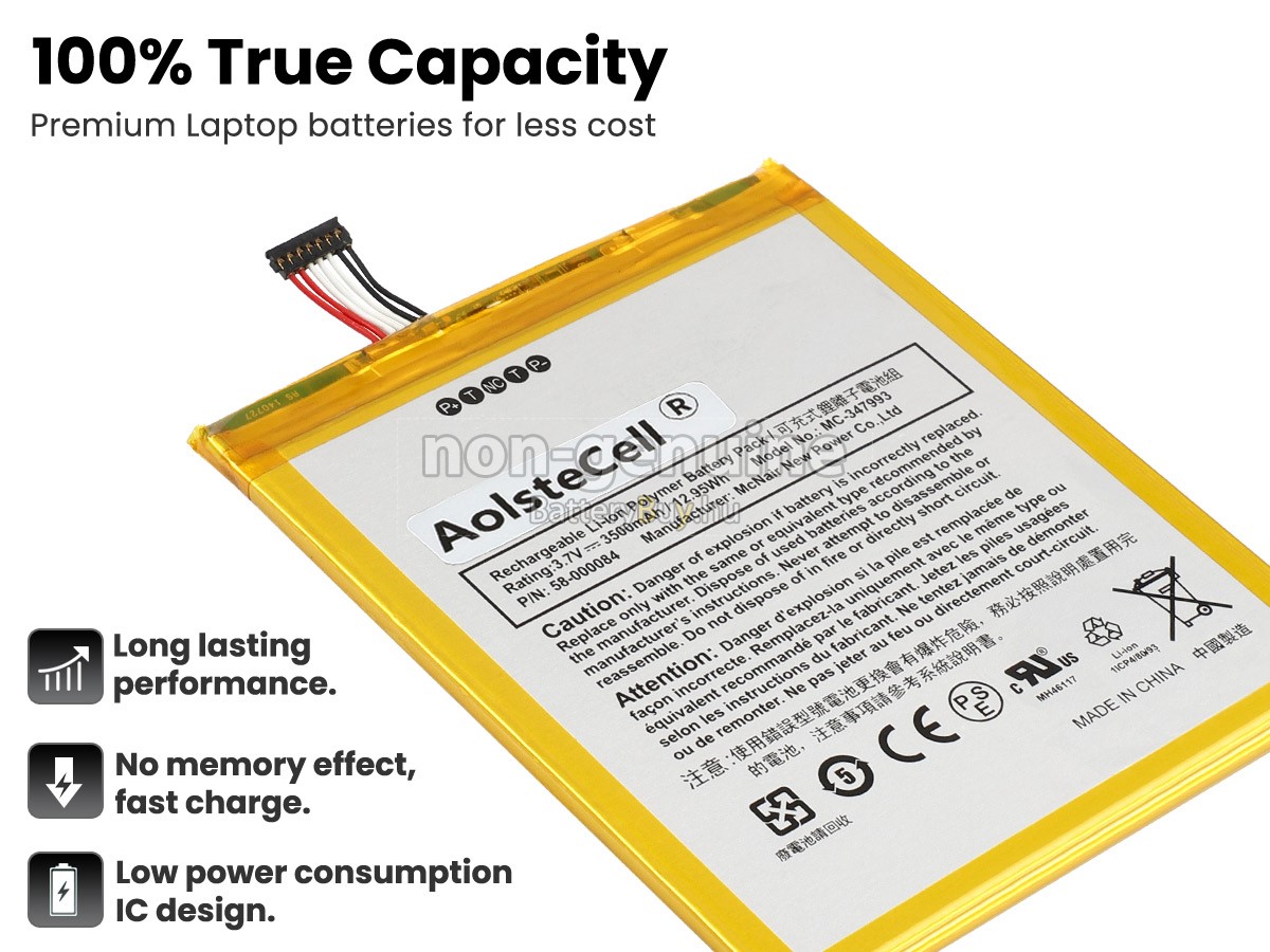 - Az Amazon FIRE HD 7 SQ46CW(4TH GEN) akkumulátor szerint 1: 1 arányosan tervezik, és mindenben megegyezik az eredetivel, 100%-os kompatibilis. Eredeti áramkör tervezése, független védelmi áramkör, túltöltés, túlterhelés, túláram, magas hőmérséklet és rövidzárlat védelme.