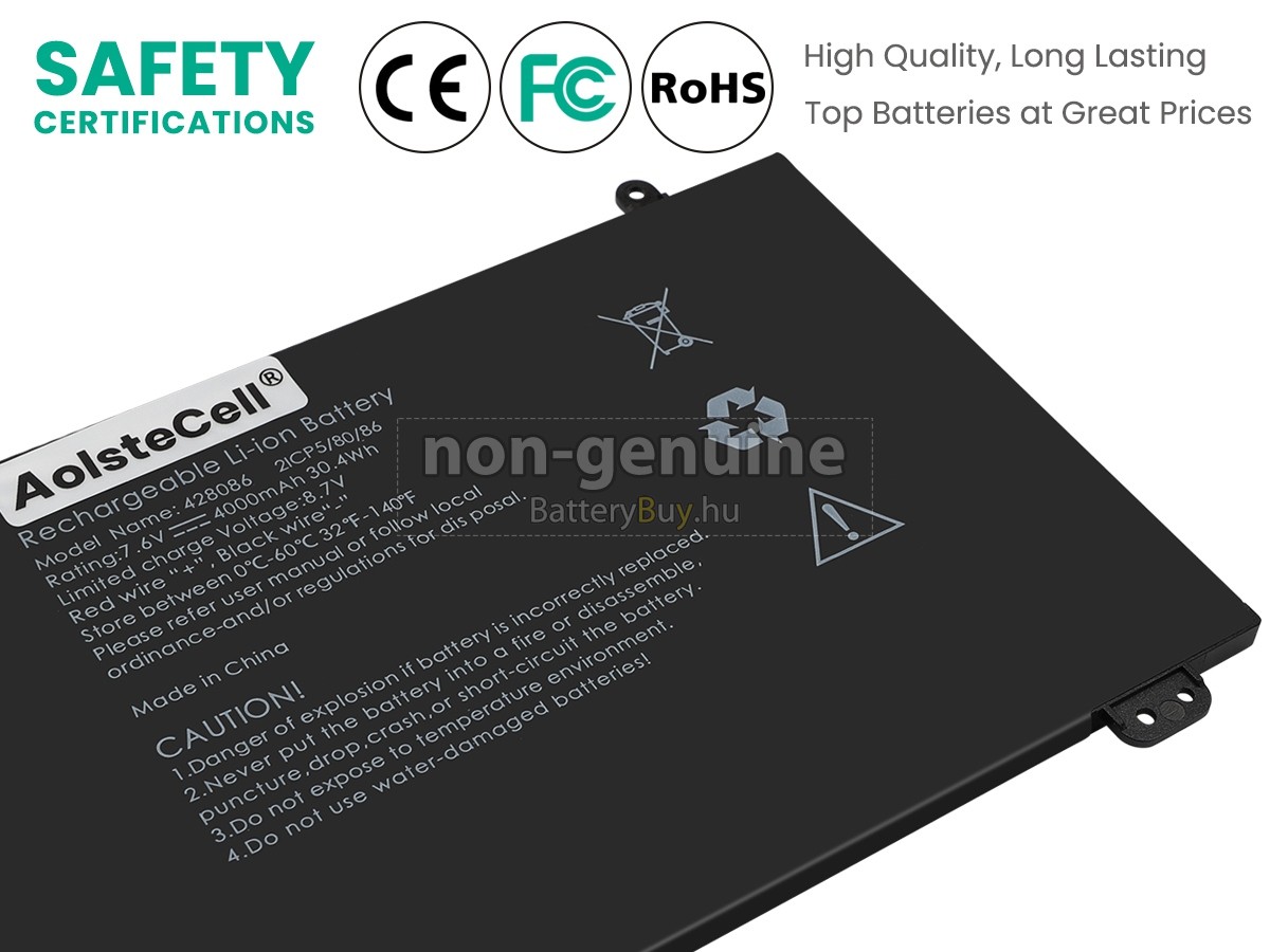 - 3 A AolsteCell 428086 akku 1:1 arányban lett tervezve, és mindenben megegyezik az eredeti akkumulátorral, így 100%-os kompatibilitást biztosít. Eredeti áramkör kialakítással, független védelmi áramkörrel, amely védelmet nyújt túltöltés, túlterhelés, túláram, magas hőmérséklet és rövidzárlat esetén.