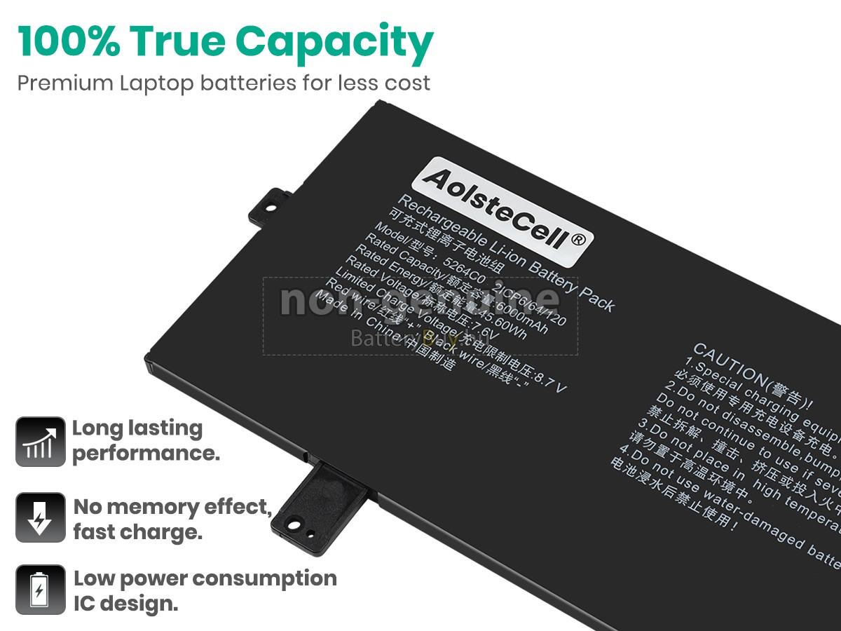 - 1 Mindegyik AolsteCell 5264C0 akkumulátor kiváló minőségű, teljesen új lítium-ion cellákból készült, amelyeket közvetlenül a gyártó biztosít. Alacsonyabb ár, de hosszabb élettartam.