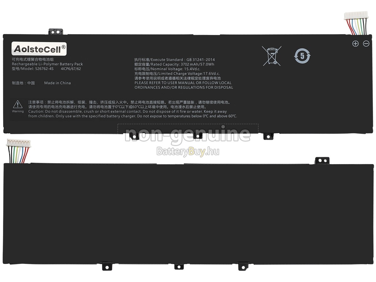 - 3 A AolsteCell 526762-4S akku 1:1 arányban lett tervezve, és mindenben megegyezik az eredeti akkumulátorral, így 100%-os kompatibilitást biztosít. Eredeti áramkör kialakítással, független védelmi áramkörrel, amely védelmet nyújt túltöltés, túlterhelés, túláram, magas hőmérséklet és rövidzárlat esetén.