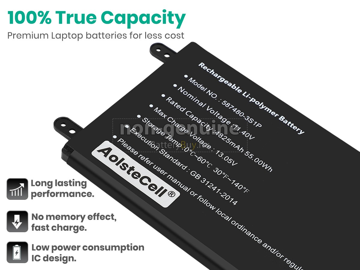 - 3 A AolsteCell 587480-3S1P akku 1:1 arányban lett tervezve, és mindenben megegyezik az eredeti akkumulátorral, így 100%-os kompatibilitást biztosít. Eredeti áramkör kialakítással, független védelmi áramkörrel, amely védelmet nyújt túltöltés, túlterhelés, túláram, magas hőmérséklet és rövidzárlat esetén.
