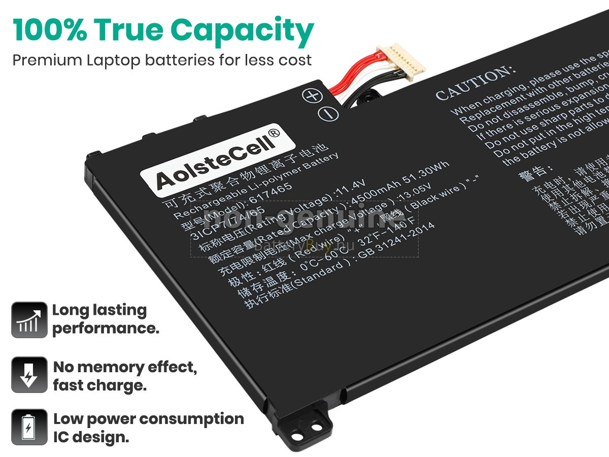 - Az AolsteCell 617465 akkumulátor szerint 1: 1 arányosan tervezik, és mindenben megegyezik az eredetivel, 100%-os kompatibilis. Eredeti áramkör tervezése, független védelmi áramkör, túltöltés, túlterhelés, túláram, magas hőmérséklet és rövidzárlat védelme.