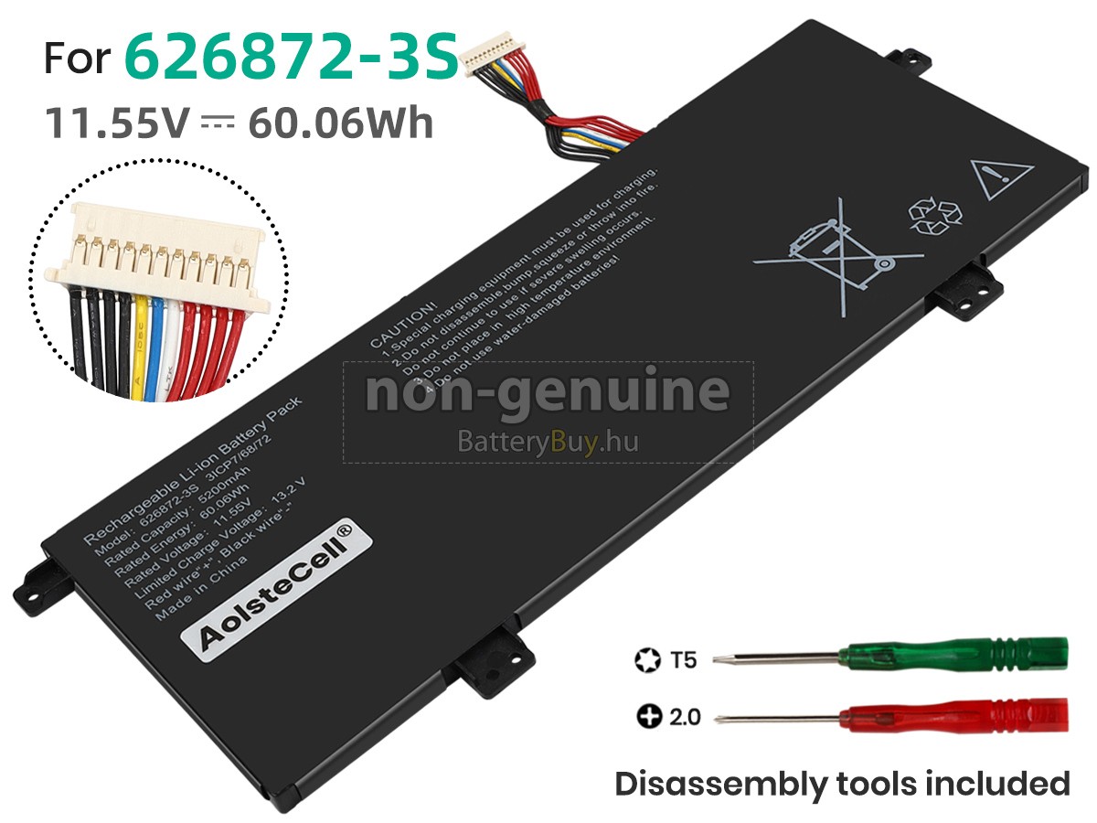 - 3 A AolsteCell 626872-3S akku 1:1 arányban lett tervezve, és mindenben megegyezik az eredeti akkumulátorral, így 100%-os kompatibilitást biztosít. Eredeti áramkör kialakítással, független védelmi áramkörrel, amely védelmet nyújt túltöltés, túlterhelés, túláram, magas hőmérséklet és rövidzárlat esetén.
