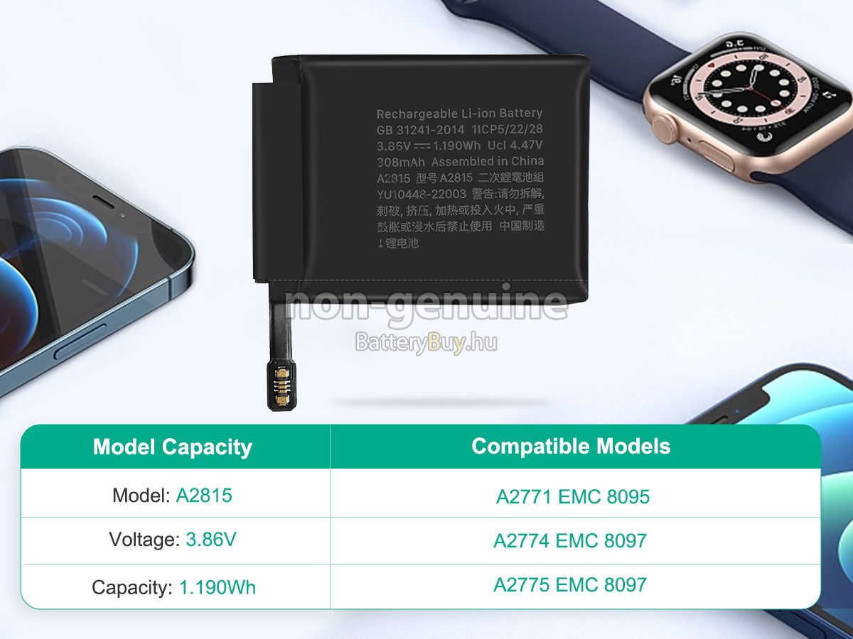 - 3 Az Apple A2858 ÓRAELEM szerint 1 : 1 arányosan tervezik, és mindenben megegyezik az eredetivel, 100%-os kompatibilis. Eredeti áramkör tervezése, független védelmi áramkör, túltöltés, túlterhelés, túláram, magas hőmérséklet és rövidzárlat védelme.