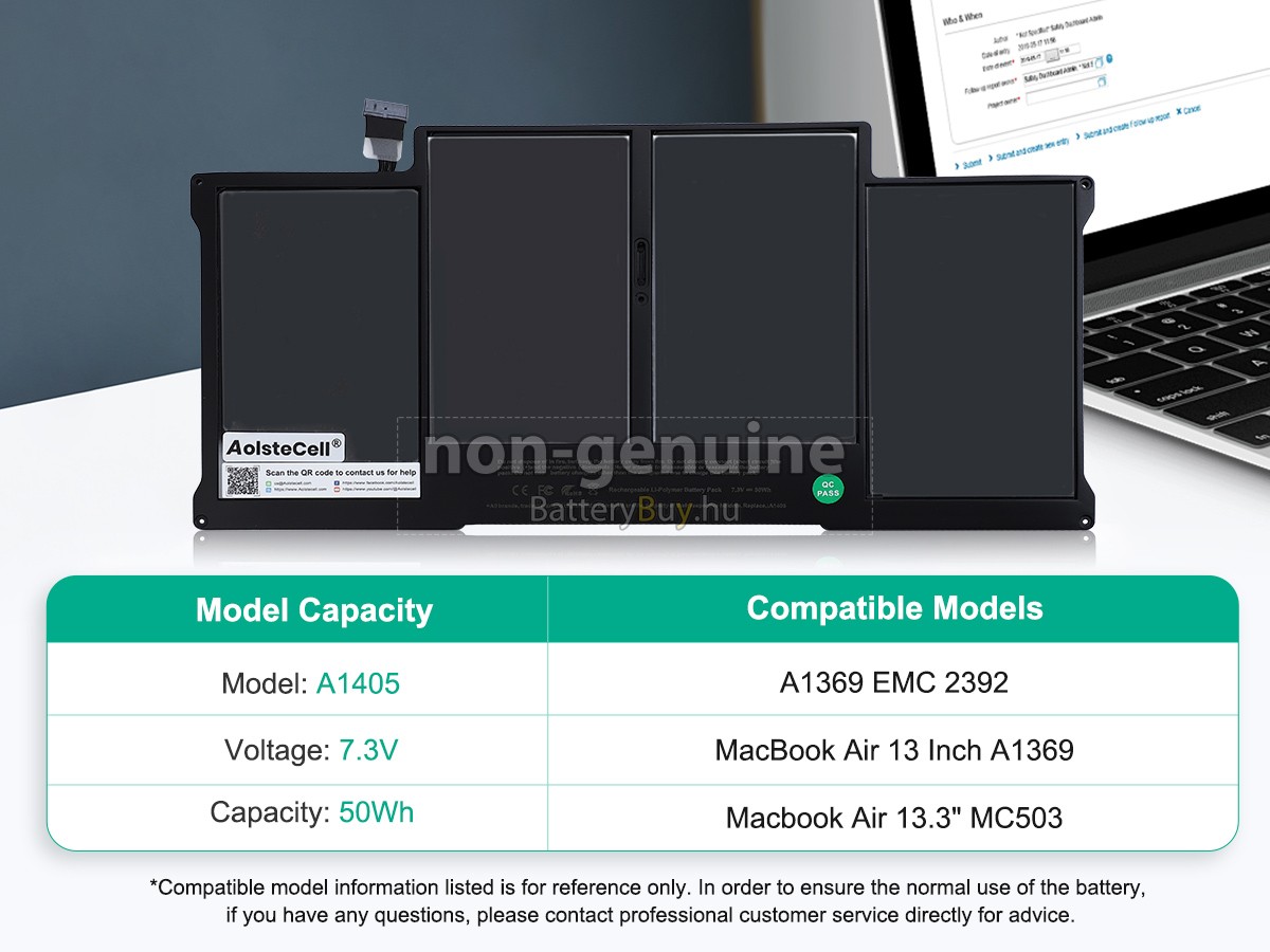 - 3 A Apple MacBook Air 13 inch A1369(Late 2010) akku 1:1 arányban lett tervezve, és mindenben megegyezik az eredeti akkumulátorral, így 100%-os kompatibilitást biztosít. Eredeti áramkör kialakítással, független védelmi áramkörrel, amely védelmet nyújt túltöltés, túlterhelés, túláram, magas hőmérséklet és rövidzárlat esetén.