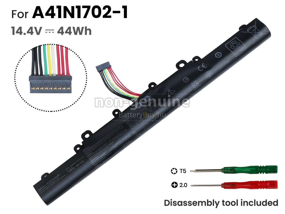 - Az Asus A41N1702-1 akkumulátor szerint 1: 1 arányosan tervezik, és mindenben megegyezik az eredetivel, 100%-os kompatibilis. Eredeti áramkör tervezése, független védelmi áramkör, túltöltés, túlterhelés, túláram, magas hőmérséklet és rövidzárlat védelme.