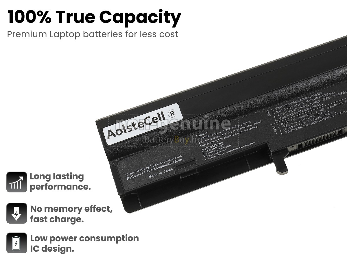 - Az Asus A42-U36 akkumulátor szerint 1: 1 arányosan tervezik, és mindenben megegyezik az eredetivel, 100%-os kompatibilis. Eredeti áramkör tervezése, független védelmi áramkör, túltöltés, túlterhelés, túláram, magas hőmérséklet és rövidzárlat védelme.