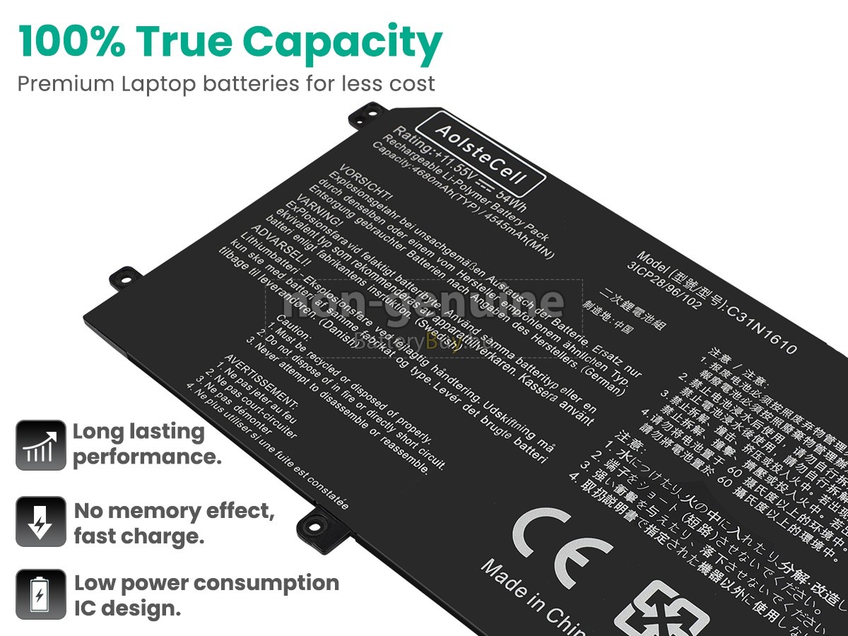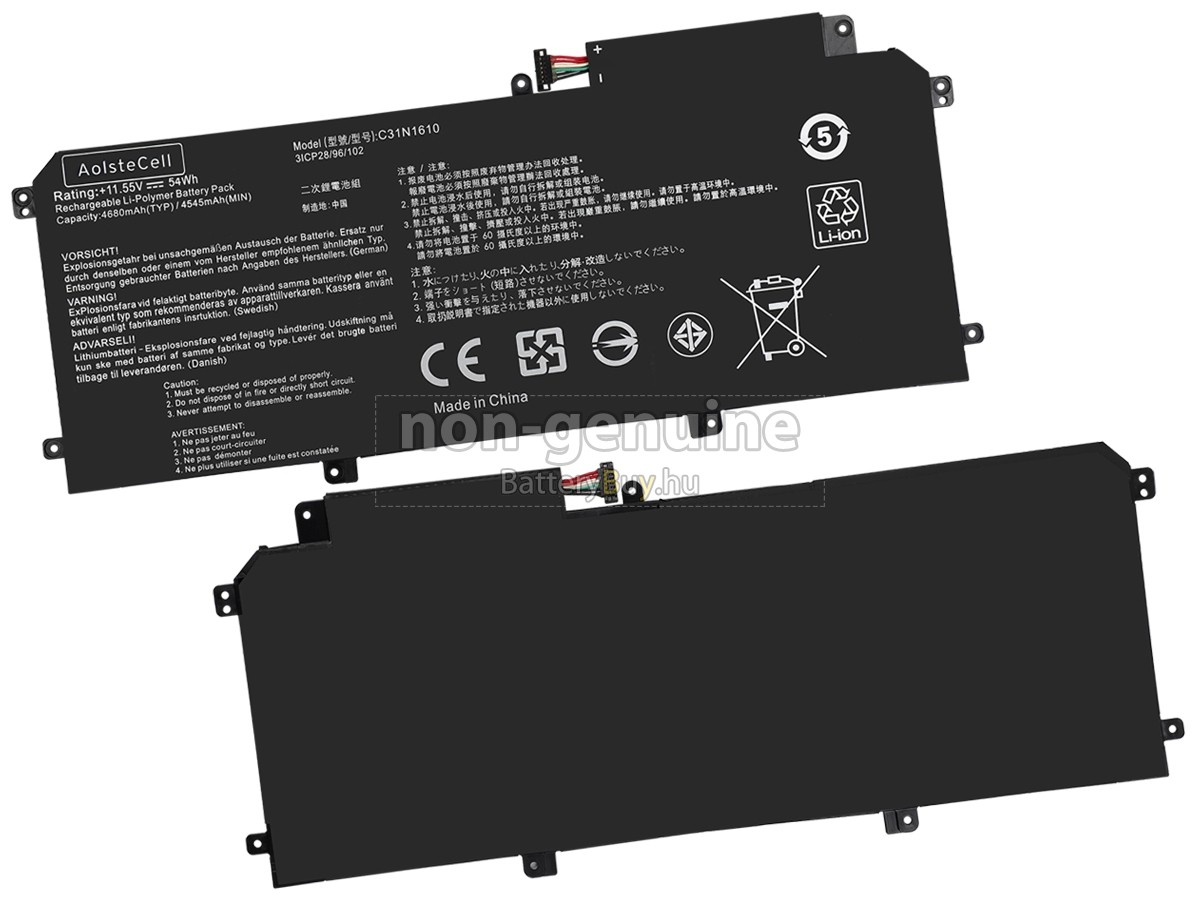 - 1 Mindegyik Asus C31N1610(3ICP3/97/103) akkumulátor kiváló minőségű, teljesen új lítium-ion cellákból készült, amelyeket közvetlenül a gyártó biztosít. Alacsonyabb ár, de hosszabb élettartam.