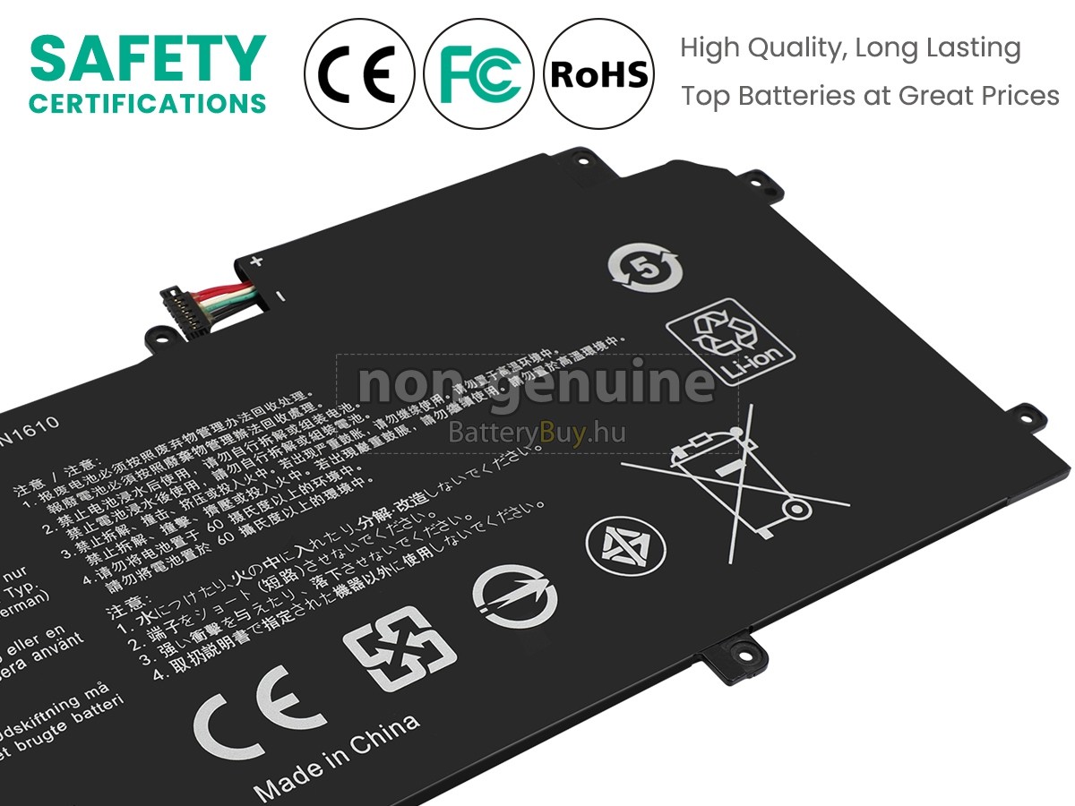 - 3 A Asus C31N1610(3ICP3/97/103) akku 1:1 arányban lett tervezve, és mindenben megegyezik az eredeti akkumulátorral, így 100%-os kompatibilitást biztosít. Eredeti áramkör kialakítással, független védelmi áramkörrel, amely védelmet nyújt túltöltés, túlterhelés, túláram, magas hőmérséklet és rövidzárlat esetén.