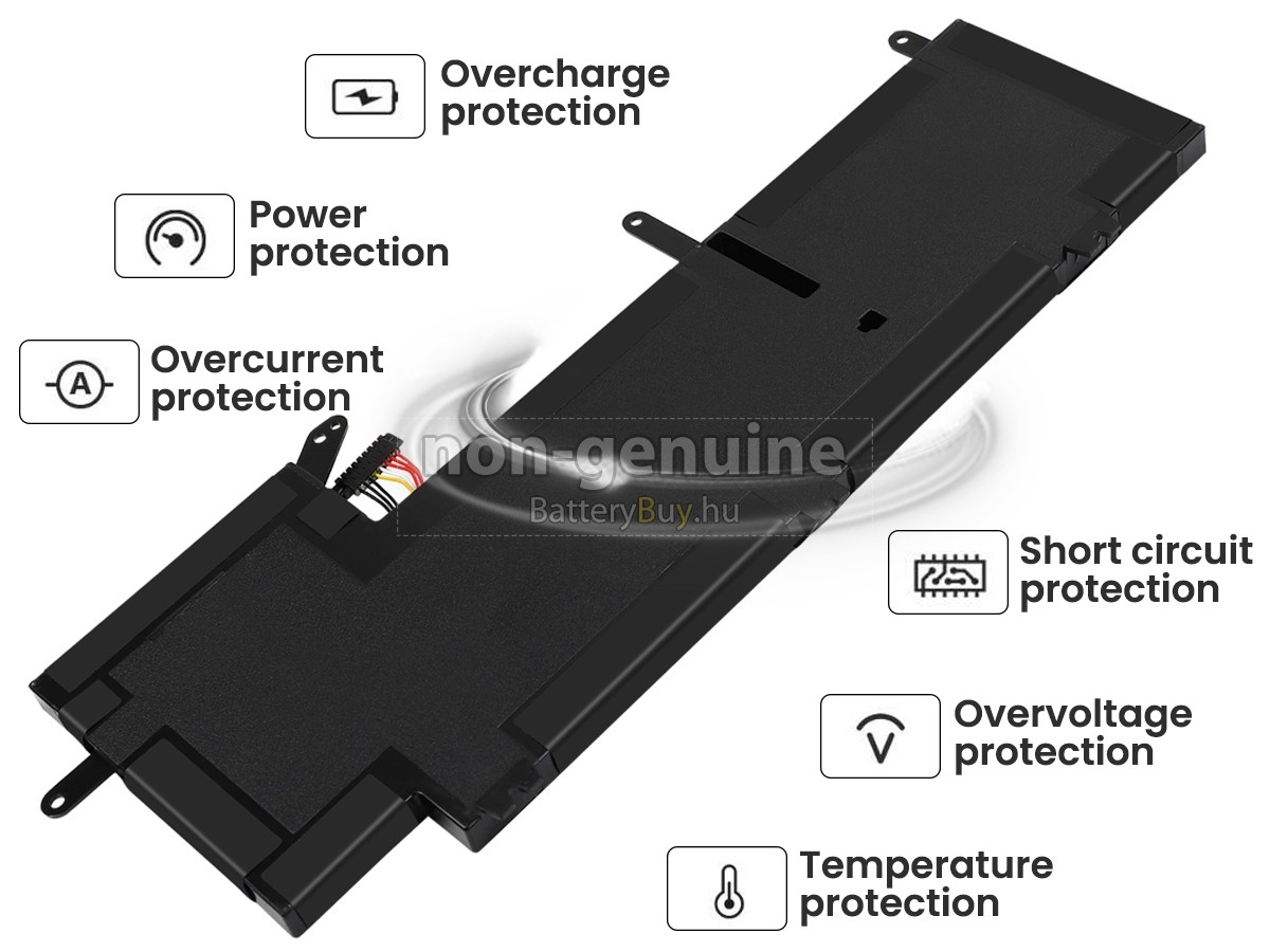 - 3 A Asus C31N1704 akku 1:1 arányban lett tervezve, és mindenben megegyezik az eredeti akkumulátorral, így 100%-os kompatibilitást biztosít. Eredeti áramkör kialakítással, független védelmi áramkörrel, amely védelmet nyújt túltöltés, túlterhelés, túláram, magas hőmérséklet és rövidzárlat esetén.