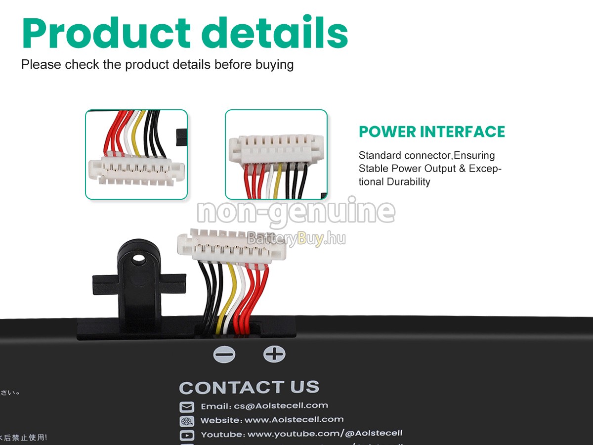 - 3 A Asus C42N1839 akku 1:1 arányban lett tervezve, és mindenben megegyezik az eredeti akkumulátorral, így 100%-os kompatibilitást biztosít. Eredeti áramkör kialakítással, független védelmi áramkörrel, amely védelmet nyújt túltöltés, túlterhelés, túláram, magas hőmérséklet és rövidzárlat esetén.