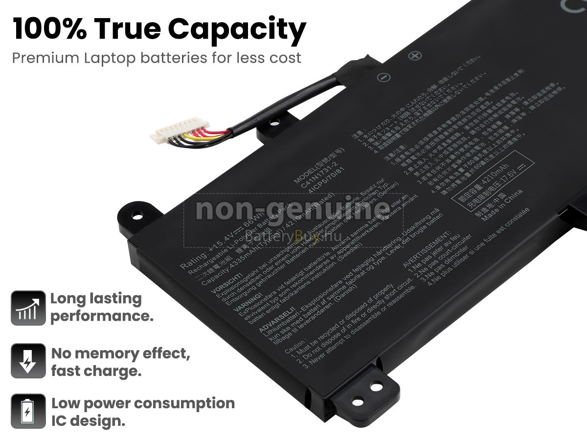 Jellemzői a mi laptop Asus Rog STRIX G531GU-79AT6PB1 akkumulátor:- Mindegyik Asus Rog STRIX G531GU-79AT6PB1 akkumulátor a kiváló minőségű, teljesen új lítium-ion akku készül, amelyeket a gyártó közvetlenül biztosítja. Alacsonyabb ár, de hosszabb élettartam.