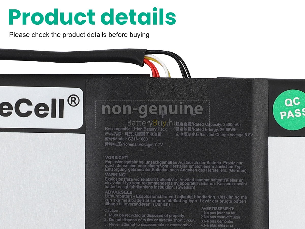 - 3 A Asus Transformer 4 Pro T304UA-BC005T akku 1:1 arányban lett tervezve, és mindenben megegyezik az eredeti akkumulátorral, így 100%-os kompatibilitást biztosít. Eredeti áramkör kialakítással, független védelmi áramkörrel, amely védelmet nyújt túltöltés, túlterhelés, túláram, magas hőmérséklet és rövidzárlat esetén.