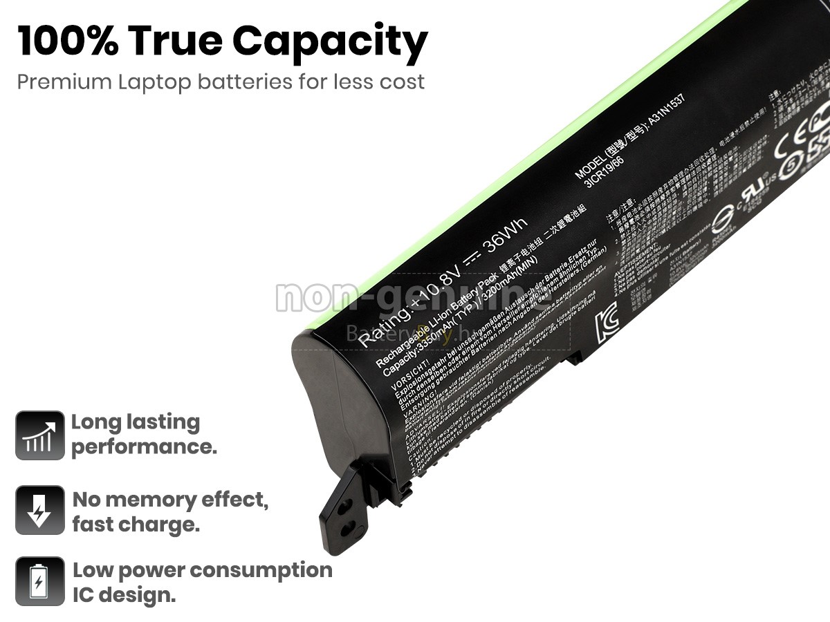 - Az Asus VivoBook MAX X441SC-WX005T akkumulátor szerint 1: 1 arányosan tervezik, és mindenben megegyezik az eredetivel, 100%-os kompatibilis. Eredeti áramkör tervezése, független védelmi áramkör, túltöltés, túlterhelés, túláram, magas hőmérséklet és rövidzárlat védelme.