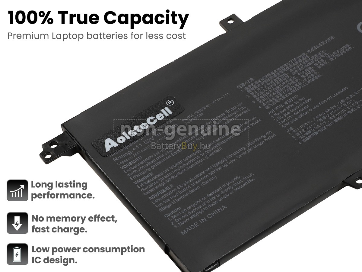 - Az Asus X430UA akkumulátor szerint 1: 1 arányosan tervezik, és mindenben megegyezik az eredetivel, 100%-os kompatibilis. Eredeti áramkör tervezése, független védelmi áramkör, túltöltés, túlterhelés, túláram, magas hőmérséklet és rövidzárlat védelme.