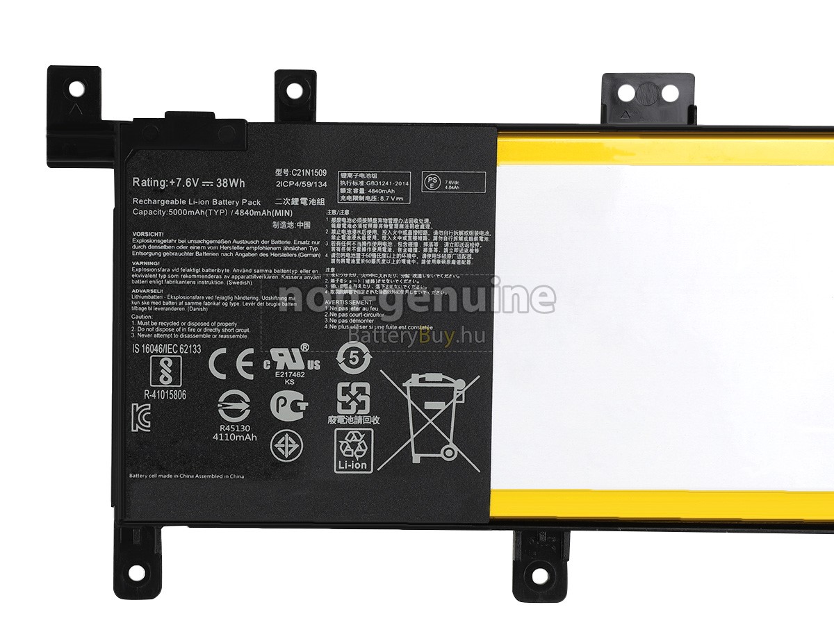 - Az Asus X556UJ-XO015T akkumulátor szerint 1: 1 arányosan tervezik, és mindenben megegyezik az eredetivel, 100%-os kompatibilis. Eredeti áramkör tervezése, független védelmi áramkör, túltöltés, túlterhelés, túláram, magas hőmérséklet és rövidzárlat védelme.
