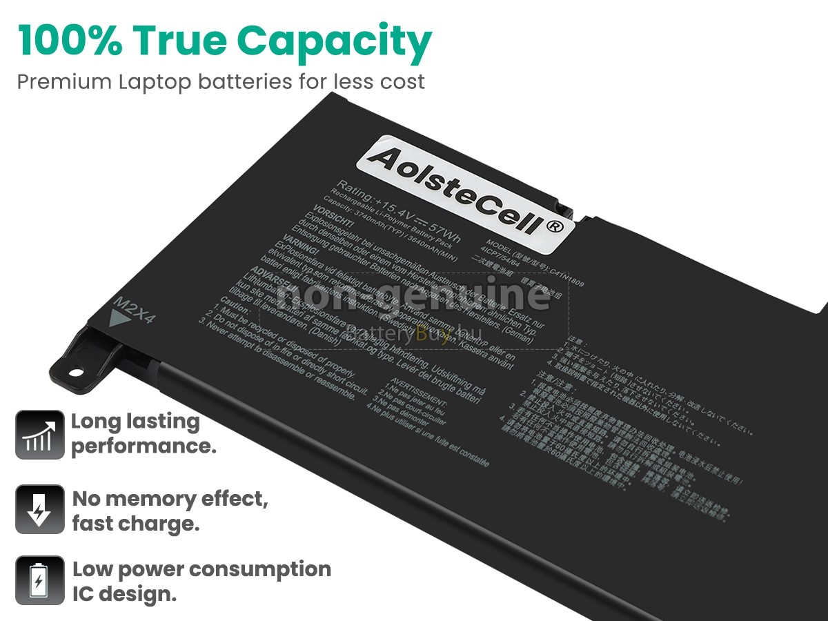 - 3 A Asus ZenBook Flip 15 UX562FDX-EZ015T akku 1:1 arányban lett tervezve, és mindenben megegyezik az eredeti akkumulátorral, így 100%-os kompatibilitást biztosít. Eredeti áramkör kialakítással, független védelmi áramkörrel, amely védelmet nyújt túltöltés, túlterhelés, túláram, magas hőmérséklet és rövidzárlat esetén.