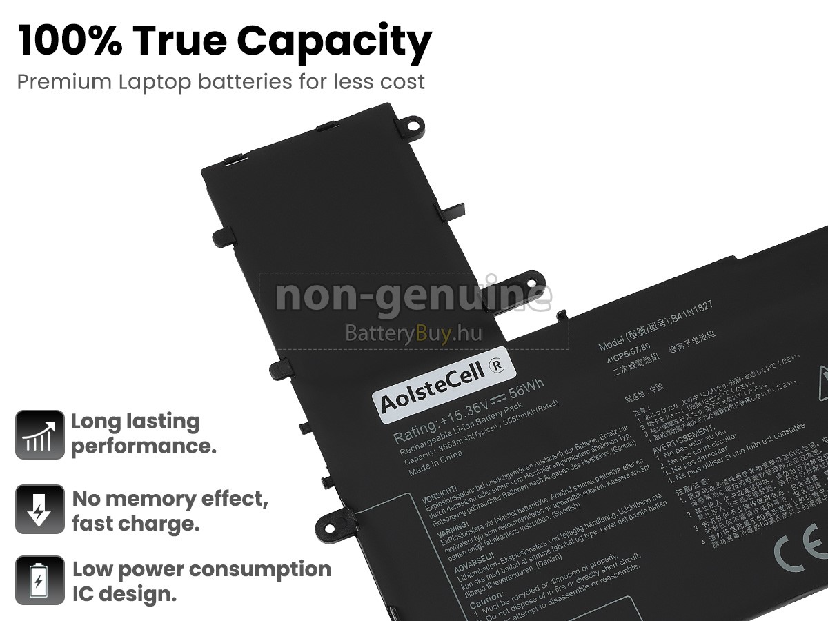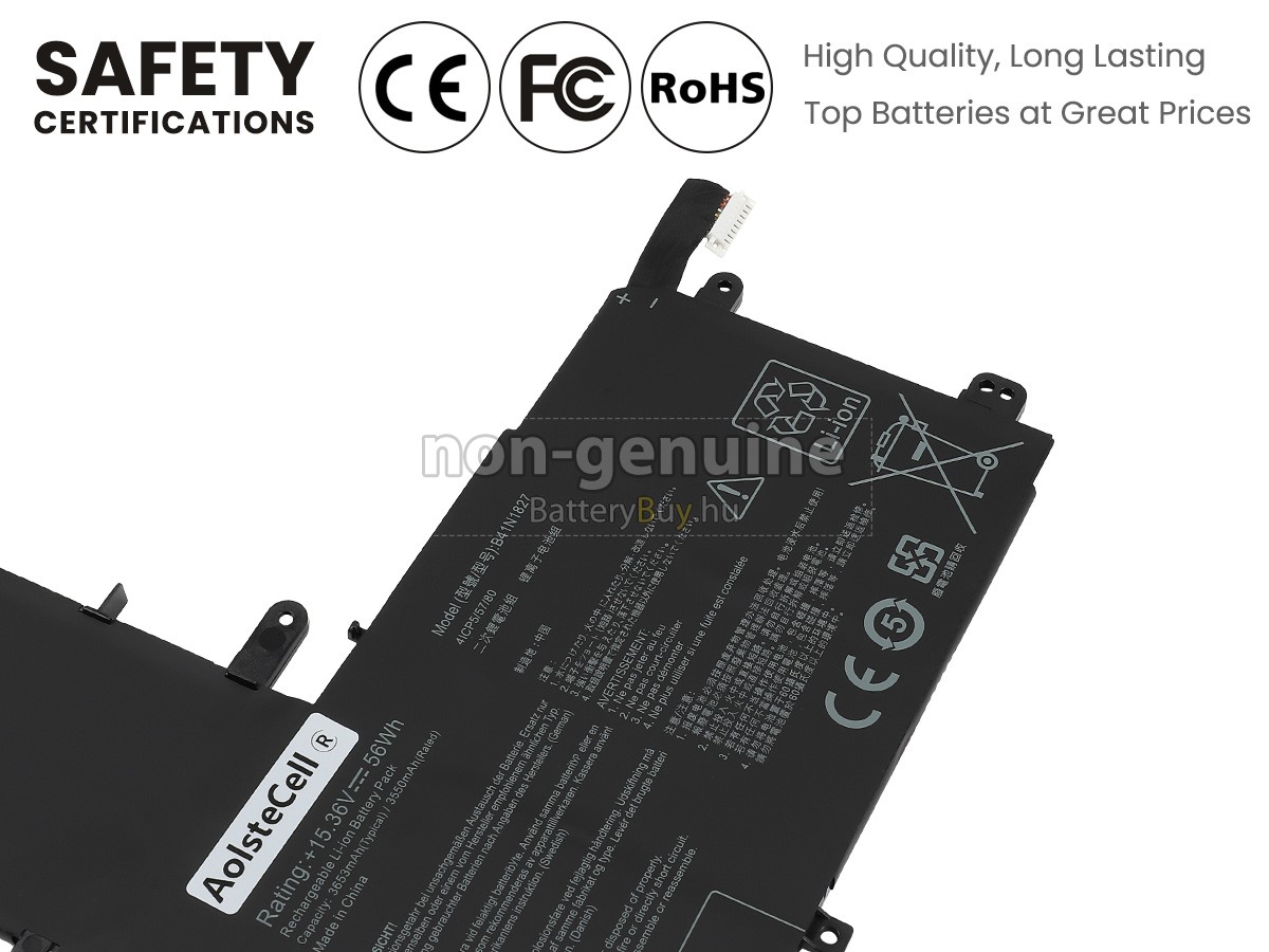 - Az Asus ZenBook Flip 15 UX562UG akkumulátor szerint 1: 1 arányosan tervezik, és mindenben megegyezik az eredetivel, 100%-os kompatibilis. Eredeti áramkör tervezése, független védelmi áramkör, túltöltés, túlterhelés, túláram, magas hőmérséklet és rövidzárlat védelme.