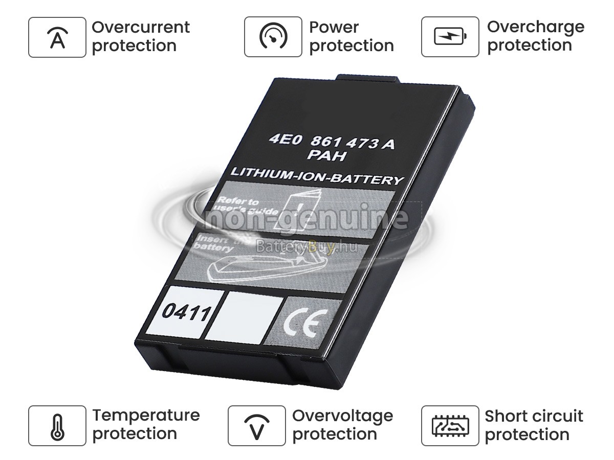 - 3 Az Audi 4E0-861-473 akku szerint 1 : 1 arányosan tervezik, és mindenben megegyezik az eredetivel, 100%-os kompatibilis. Eredeti áramkör tervezése, független védelmi áramkör, túltöltés, túlterhelés, túláram, magas hőmérséklet és rövidzárlat védelme.