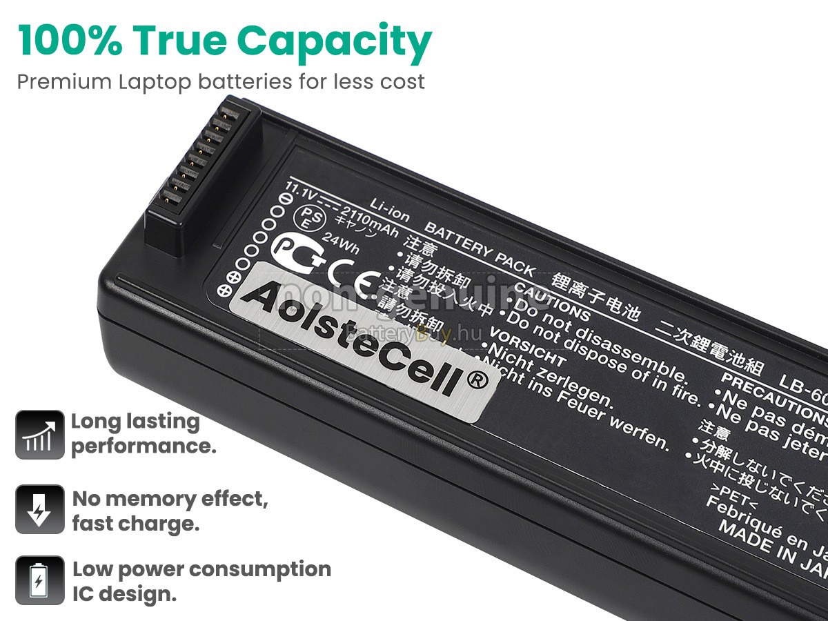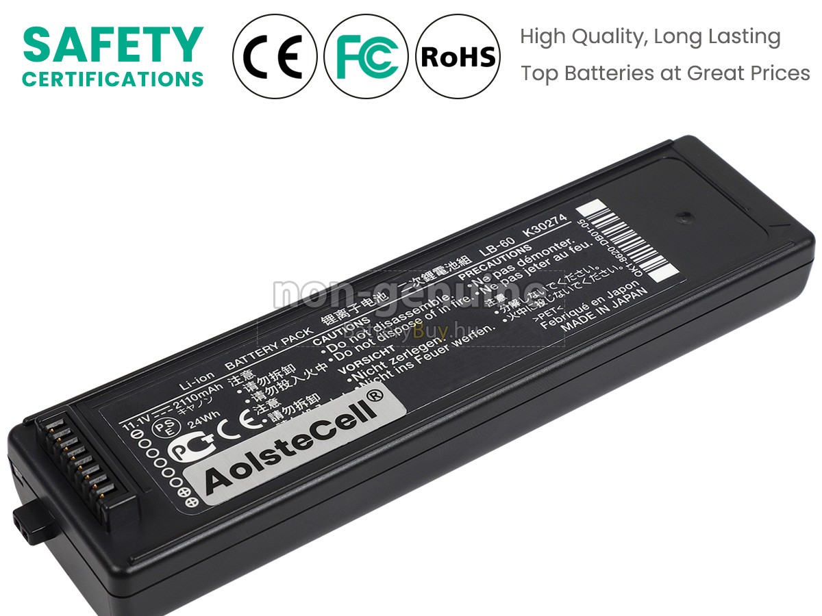 - 3 Az Canon K30274 akku szerint 1 : 1 arányosan tervezik, és mindenben megegyezik az eredetivel, 100%-os kompatibilis. Eredeti áramkör tervezése, független védelmi áramkör, túltöltés, túlterhelés, túláram, magas hőmérséklet és rövidzárlat védelme.