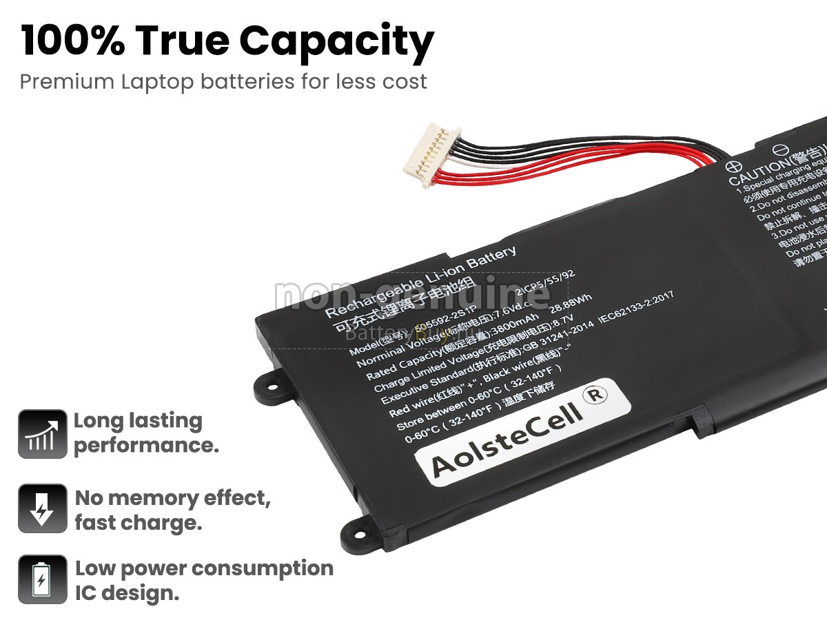 - 3 A CHUWI 505592-2S1P(ICP5/55/92) akku 1:1 arányban lett tervezve, és mindenben megegyezik az eredeti akkumulátorral, így 100%-os kompatibilitást biztosít. Eredeti áramkör kialakítással, független védelmi áramkörrel, amely védelmet nyújt túltöltés, túlterhelés, túláram, magas hőmérséklet és rövidzárlat esetén.