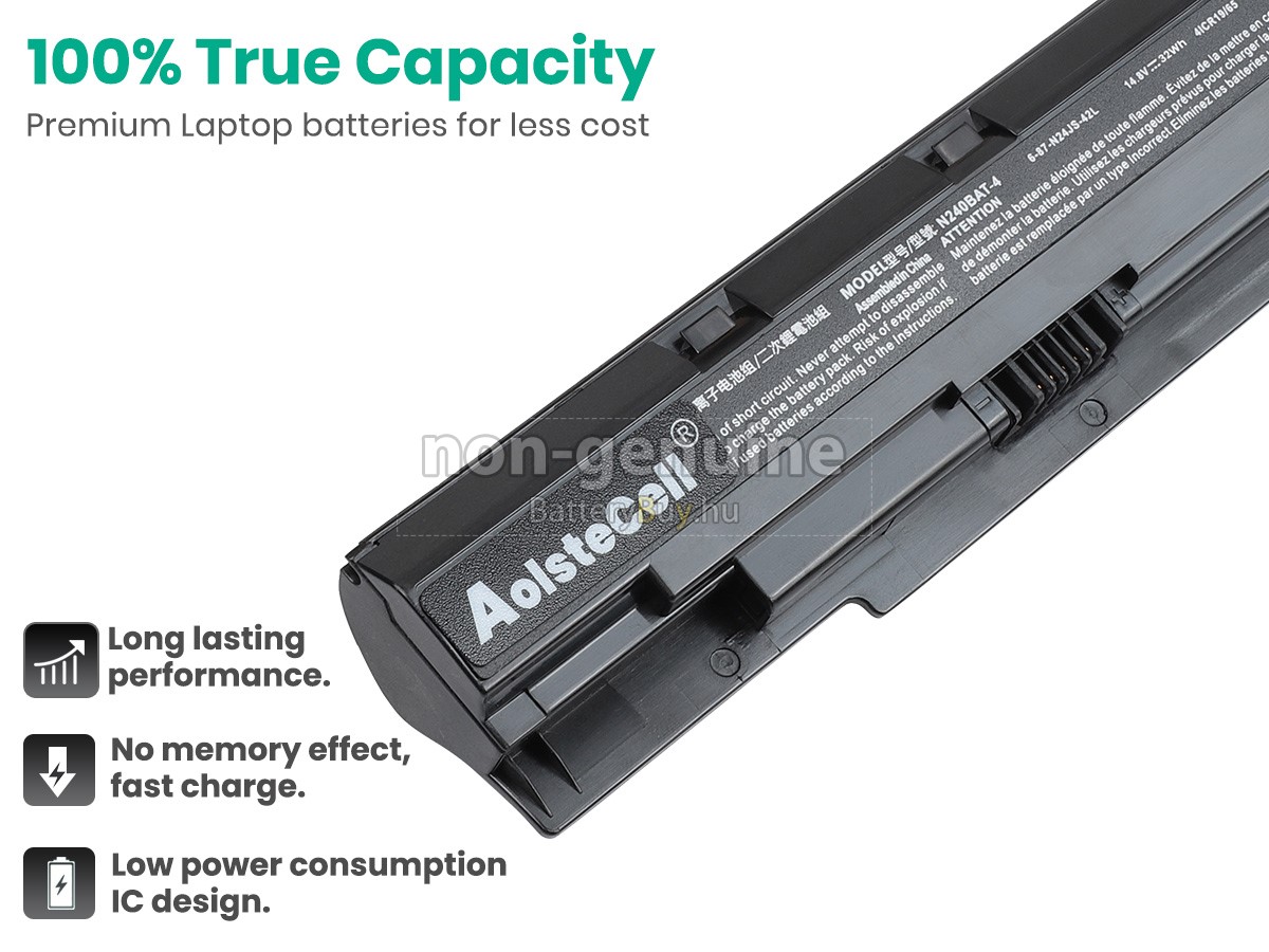 - 3 A Clevo 6-87-N24JS-4UF3 akku 1:1 arányban lett tervezve, és mindenben megegyezik az eredeti akkumulátorral, így 100%-os kompatibilitást biztosít. Eredeti áramkör kialakítással, független védelmi áramkörrel, amely védelmet nyújt túltöltés, túlterhelés, túláram, magas hőmérséklet és rövidzárlat esetén.