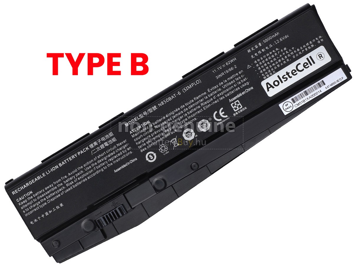 - 1 Mindegyik Clevo N850HN akkumulátor kiváló minőségű, teljesen új lítium-ion cellákból készült, amelyeket közvetlenül a gyártó biztosít. Alacsonyabb ár, de hosszabb élettartam.