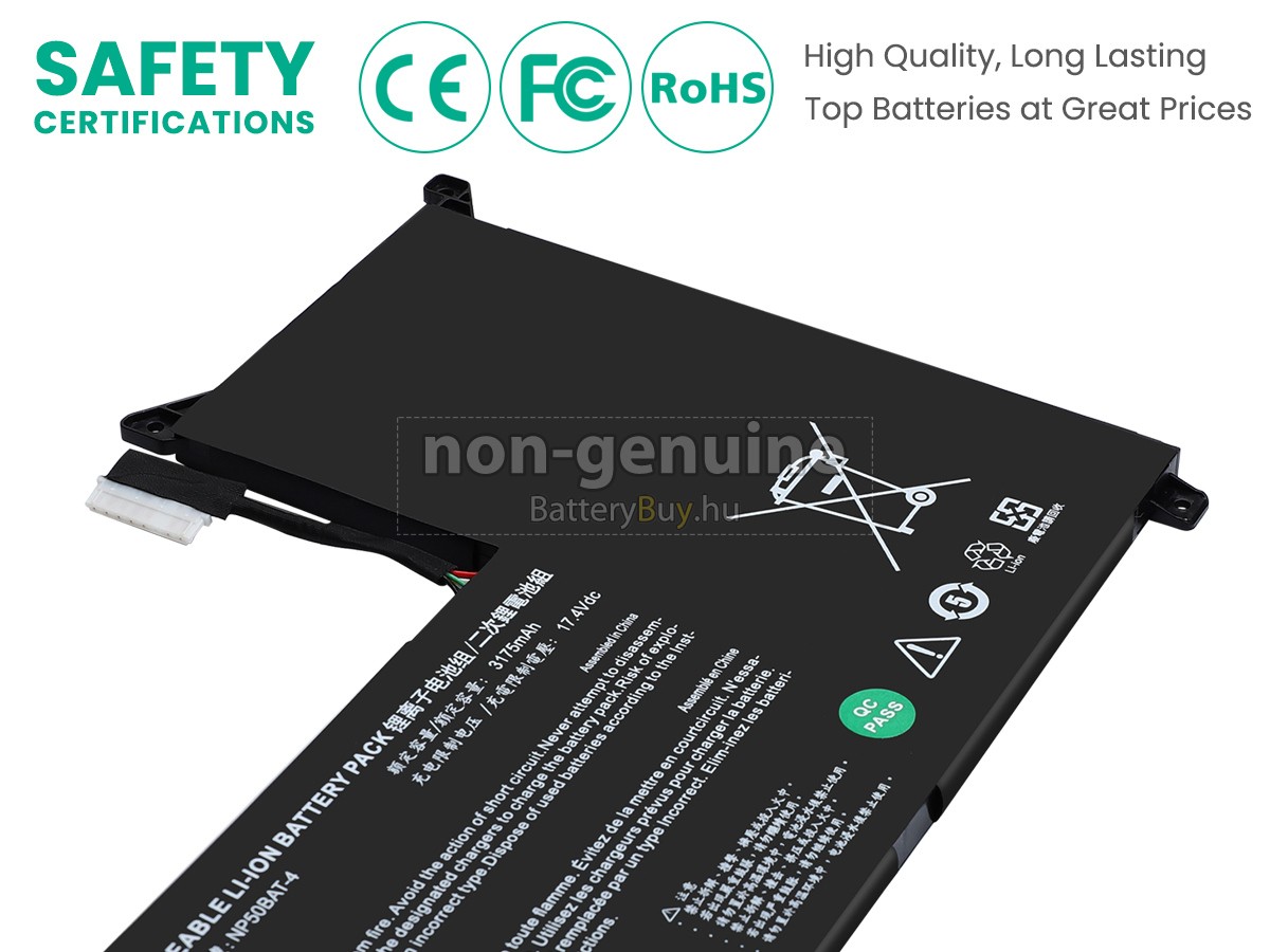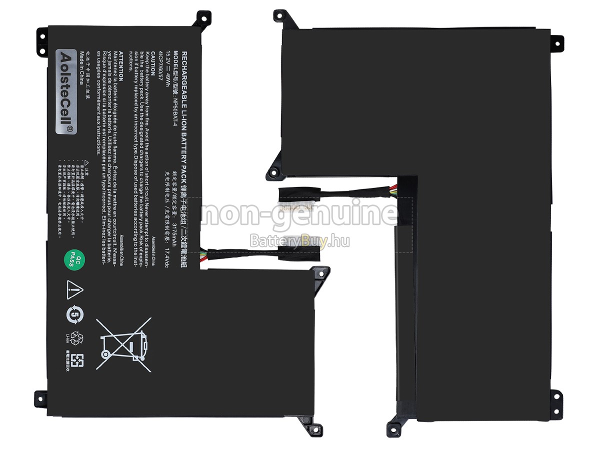 - 3 A Clevo NP50HH akku 1:1 arányban lett tervezve, és mindenben megegyezik az eredeti akkumulátorral, így 100%-os kompatibilitást biztosít. Eredeti áramkör kialakítással, független védelmi áramkörrel, amely védelmet nyújt túltöltés, túlterhelés, túláram, magas hőmérséklet és rövidzárlat esetén.