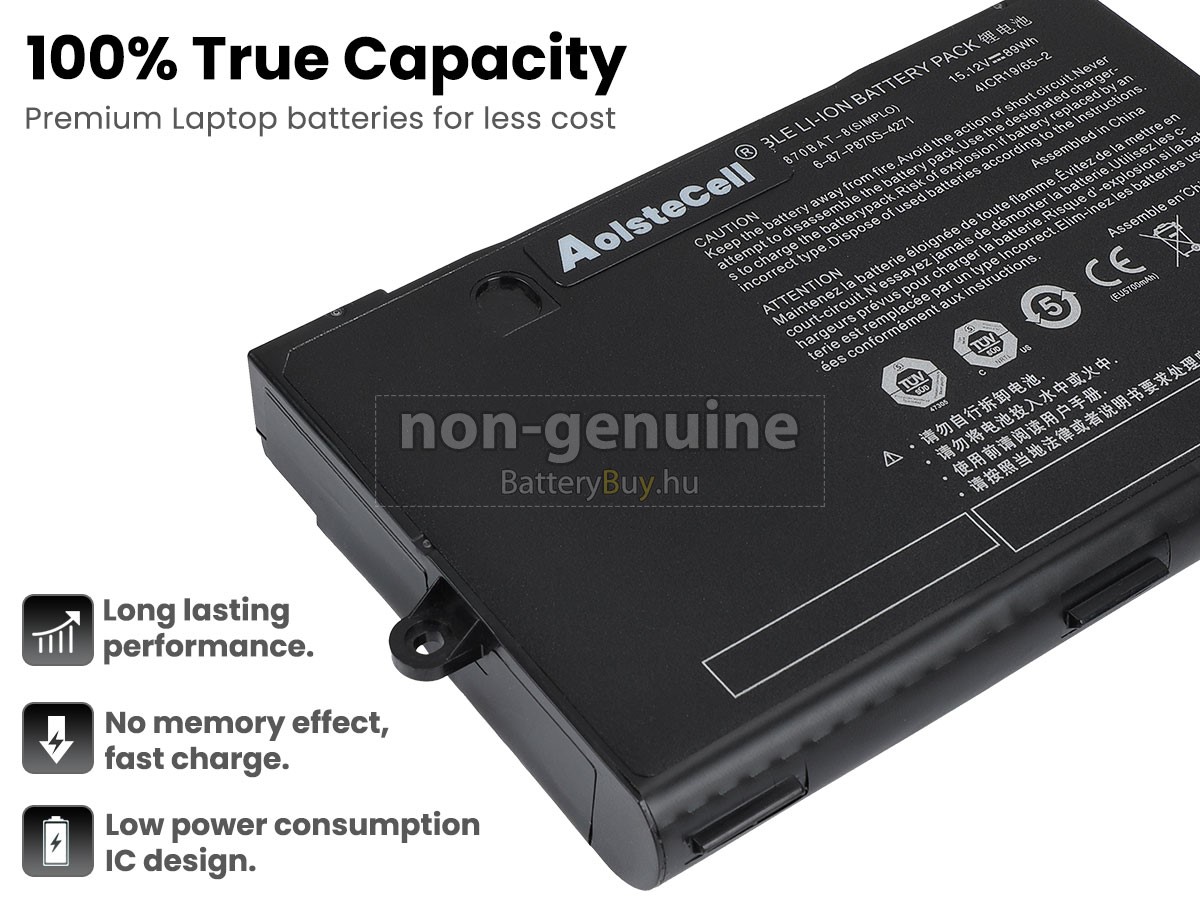 - Az Clevo P870BAT-8 akkumulátor szerint 1: 1 arányosan tervezik, és mindenben megegyezik az eredetivel, 100%-os kompatibilis. Eredeti áramkör tervezése, független védelmi áramkör, túltöltés, túlterhelés, túláram, magas hőmérséklet és rövidzárlat védelme.
