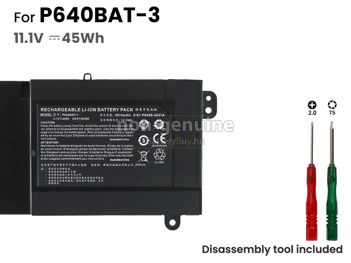 - Az Clevo ST-R2 akkumulátor szerint 1: 1 arányosan tervezik, és mindenben megegyezik az eredetivel, 100%-os kompatibilis. Eredeti áramkör tervezése, független védelmi áramkör, túltöltés, túlterhelés, túláram, magas hőmérséklet és rövidzárlat védelme.