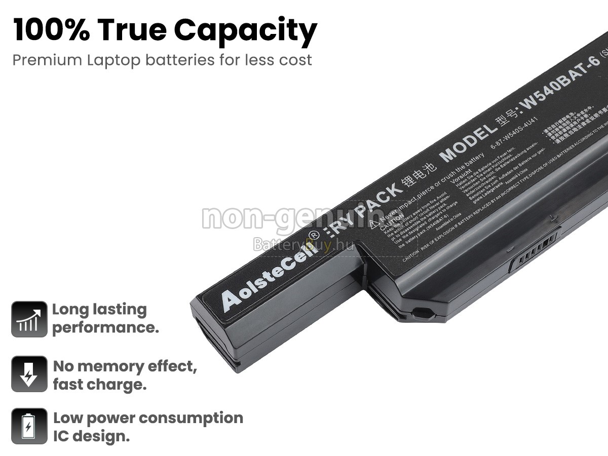 - Az Clevo W550EU akkumulátor szerint 1: 1 arányosan tervezik, és mindenben megegyezik az eredetivel, 100%-os kompatibilis. Eredeti áramkör tervezése, független védelmi áramkör, túltöltés, túlterhelés, túláram, magas hőmérséklet és rövidzárlat védelme.
