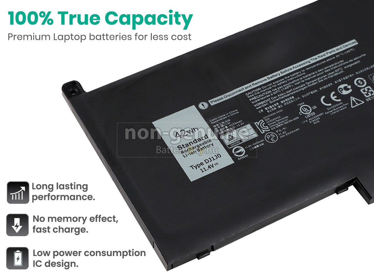 - 3 A Dell DM6WC akku 1:1 arányban lett tervezve, és mindenben megegyezik az eredeti akkumulátorral, így 100%-os kompatibilitást biztosít. Eredeti áramkör kialakítással, független védelmi áramkörrel, amely védelmet nyújt túltöltés, túlterhelés, túláram, magas hőmérséklet és rövidzárlat esetén.