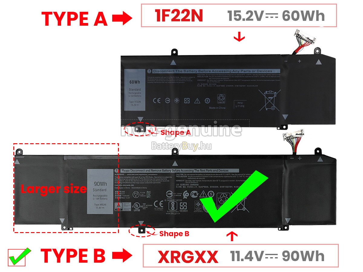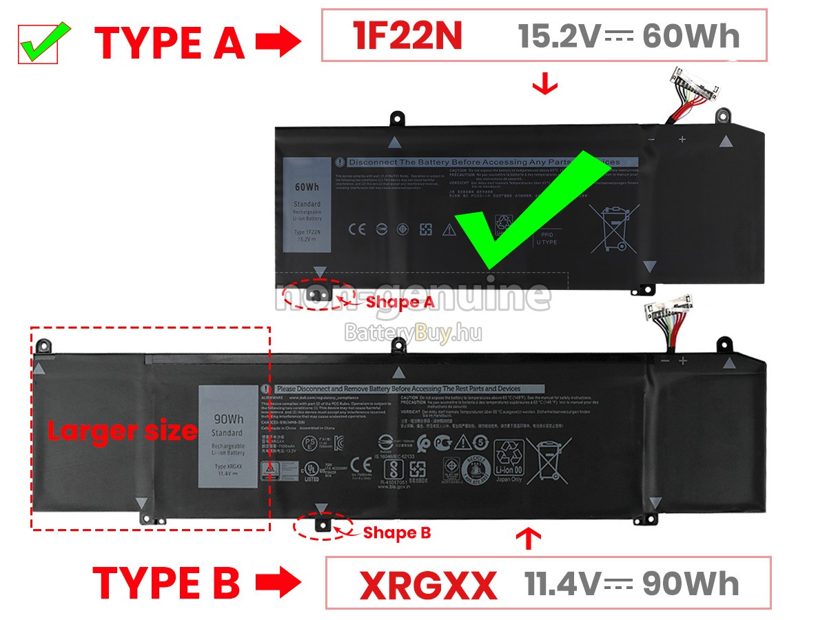 - Az Dell G5 15 5590 akkumulátor szerint 1: 1 arányosan tervezik, és mindenben megegyezik az eredetivel, 100%-os kompatibilis. Eredeti áramkör tervezése, független védelmi áramkör, túltöltés, túlterhelés, túláram, magas hőmérséklet és rövidzárlat védelme.