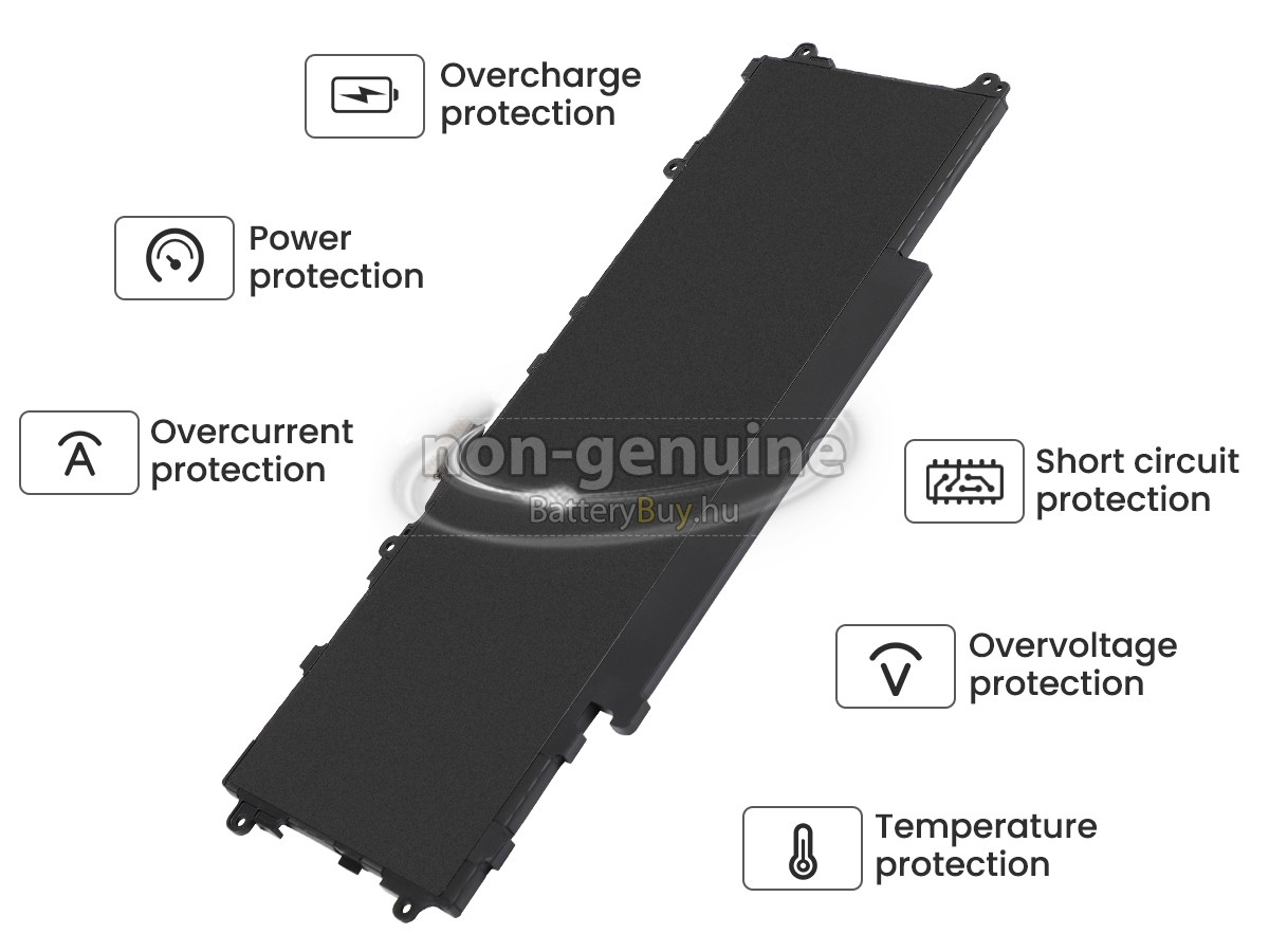 - 3 A Dell GT6TK akku 1:1 arányban lett tervezve, és mindenben megegyezik az eredeti akkumulátorral, így 100%-os kompatibilitást biztosít. Eredeti áramkör kialakítással, független védelmi áramkörrel, amely védelmet nyújt túltöltés, túlterhelés, túláram, magas hőmérséklet és rövidzárlat esetén.