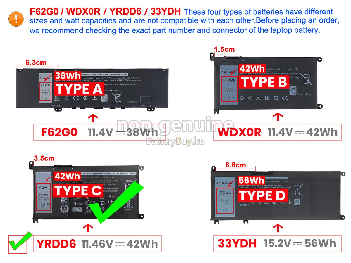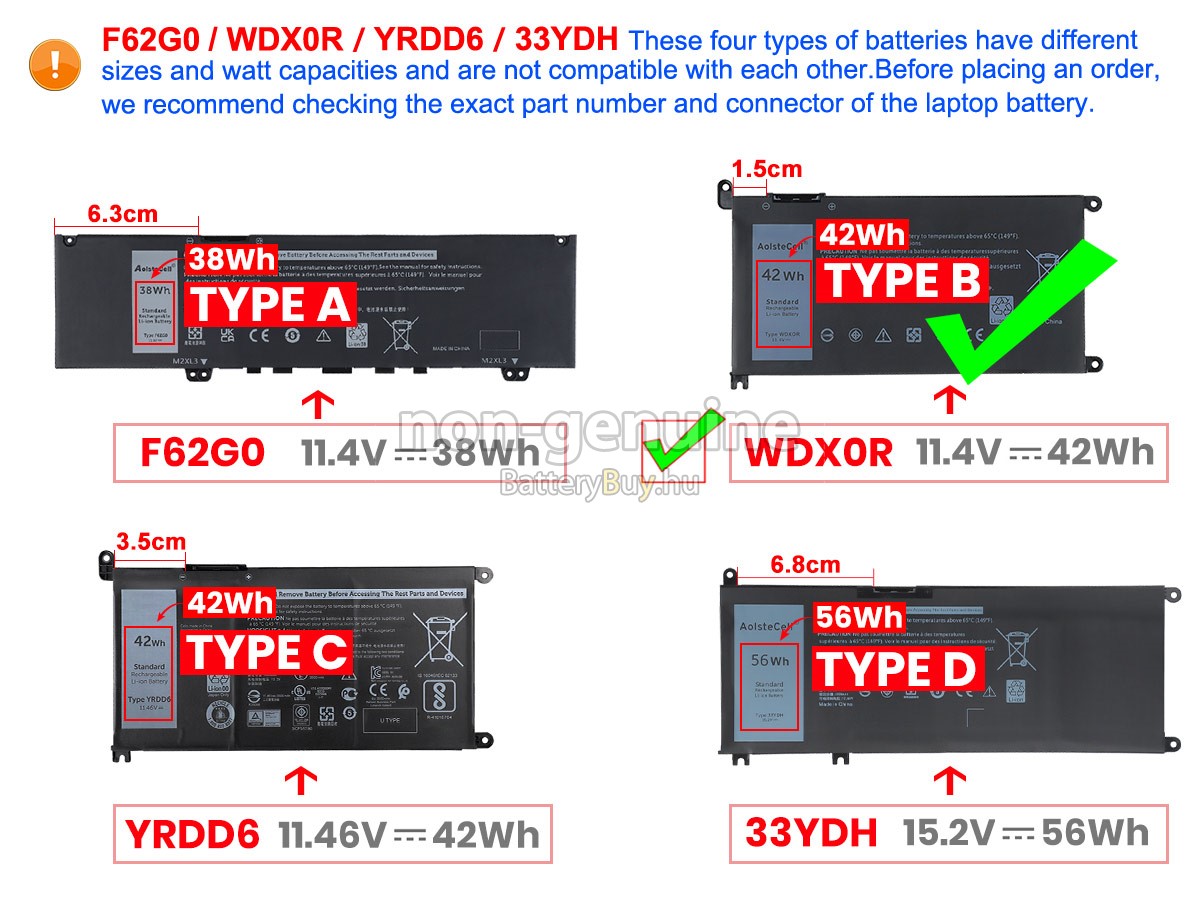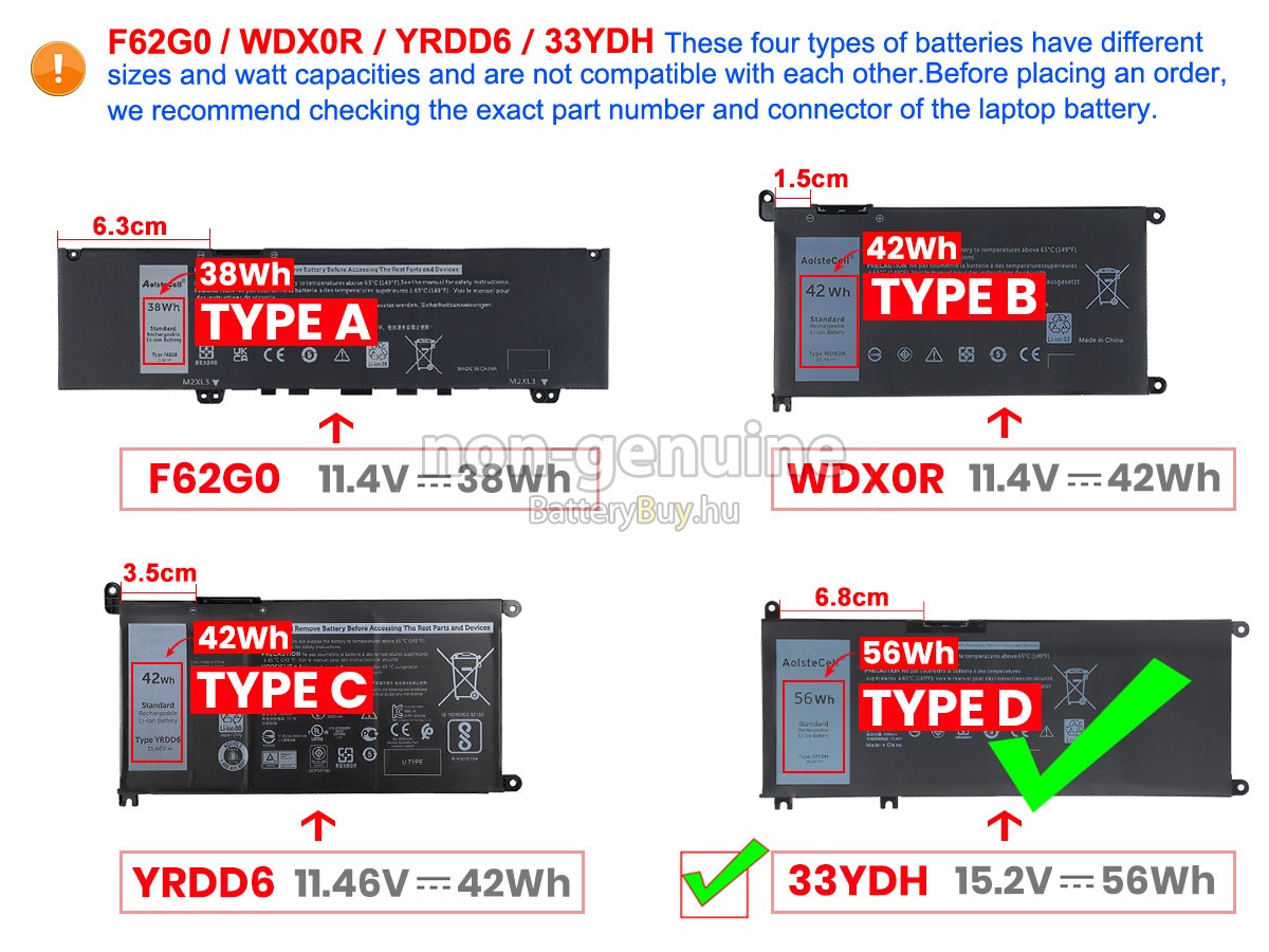 - Az Dell Inspiron 13 7000 2-IN-1 akkumulátor szerint 1: 1 arányosan tervezik, és mindenben megegyezik az eredetivel, 100%-os kompatibilis. Eredeti áramkör tervezése, független védelmi áramkör, túltöltés, túlterhelés, túláram, magas hőmérséklet és rövidzárlat védelme.