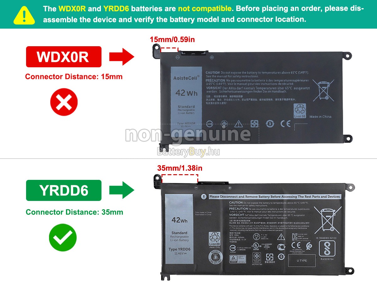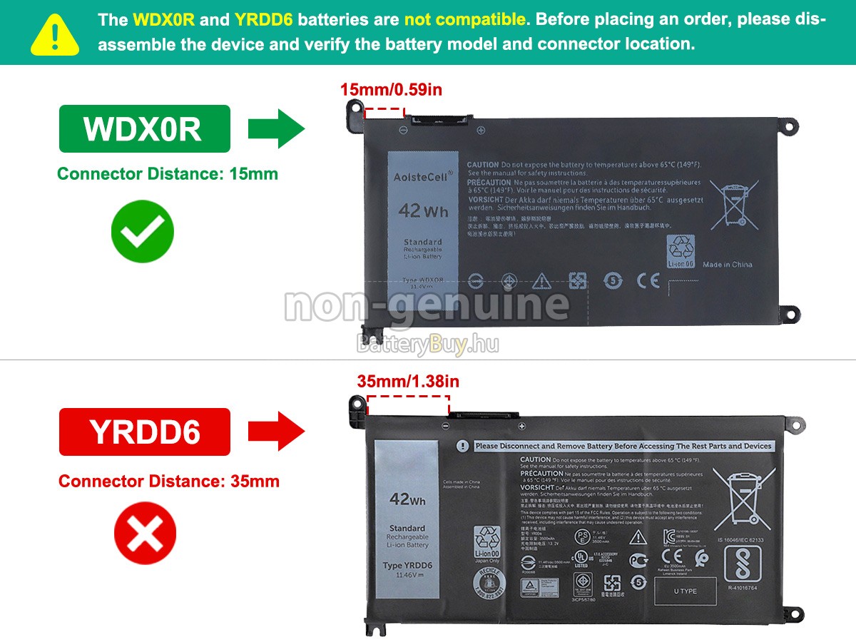 - 3 A Dell P75G akku 1:1 arányban lett tervezve, és mindenben megegyezik az eredeti akkumulátorral, így 100%-os kompatibilitást biztosít. Eredeti áramkör kialakítással, független védelmi áramkörrel, amely védelmet nyújt túltöltés, túlterhelés, túláram, magas hőmérséklet és rövidzárlat esetén.