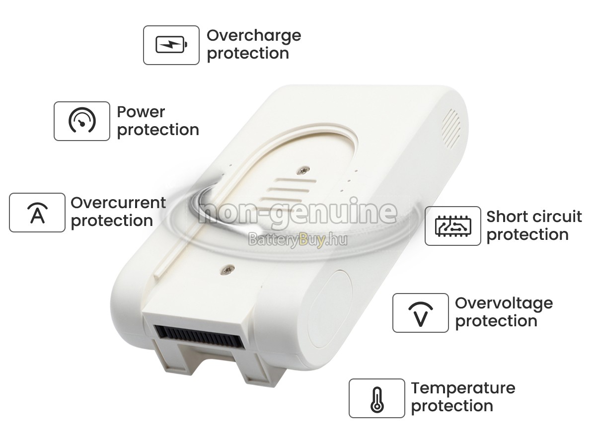- 3 Az Dreame V2309-7S1P-BCA porszívó akkumulátor szerint 1: 1 arányosan tervezik, és mindenben megegyezik az eredetivel, 100%-os kompatibilis. Eredeti áramkör tervezése, független védelmi áramkör, túltöltés, túlterhelés, túláram, magas hőmérséklet és rövidzárlat védelme.