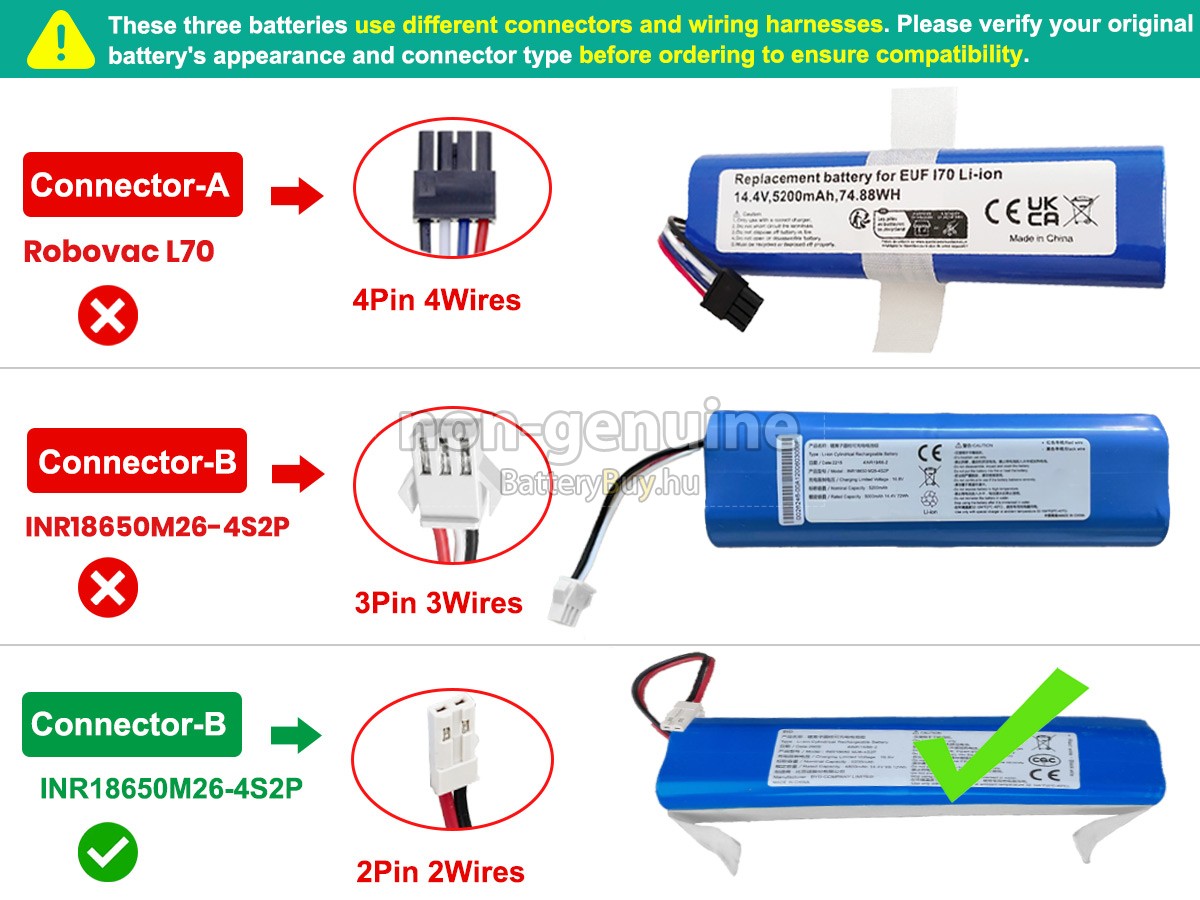Kiváló minőségű Eufy INR18650M26-4S2P akkumulátor elérhető a Batterybuy.hu-n, amely tökéletesen kompatibilis a készülékével, vagy akár javítja az eredeti akkumulátor teljesítményét. Az akkumulátorokat a legszigorúbb szabványok szerint gyártjuk, és alapos kiválasztási és minőségellenőrzési folyamaton esnek át, megfelelve a CE előírásoknak. Versenyképes áron kínálunk nagyobb kapacitású akkumulátorokat. Az új Eufy INR18650M26-4S2P akkumulátor Magyarországról érkezik, gyors szállítással, a legjobb áron és kiemelkedő értékesítés utáni szolgáltatással.