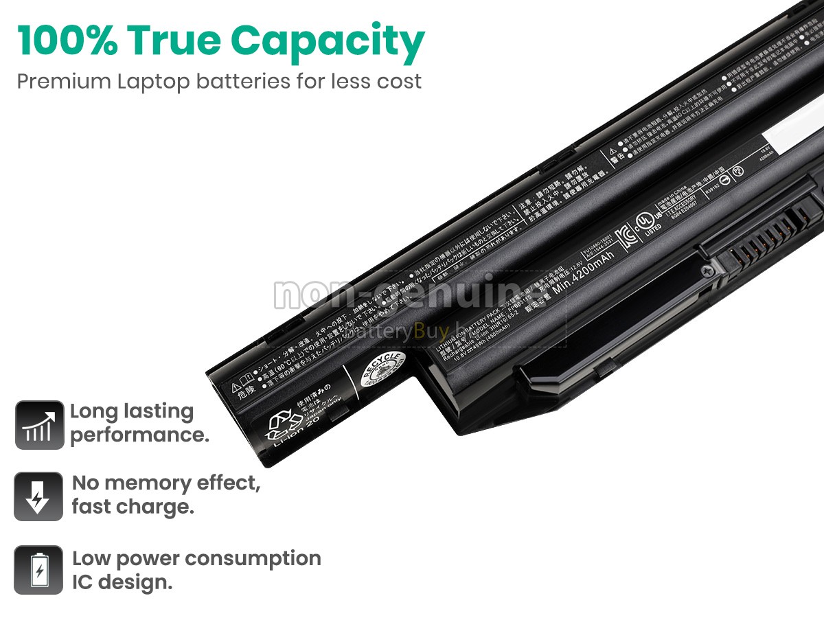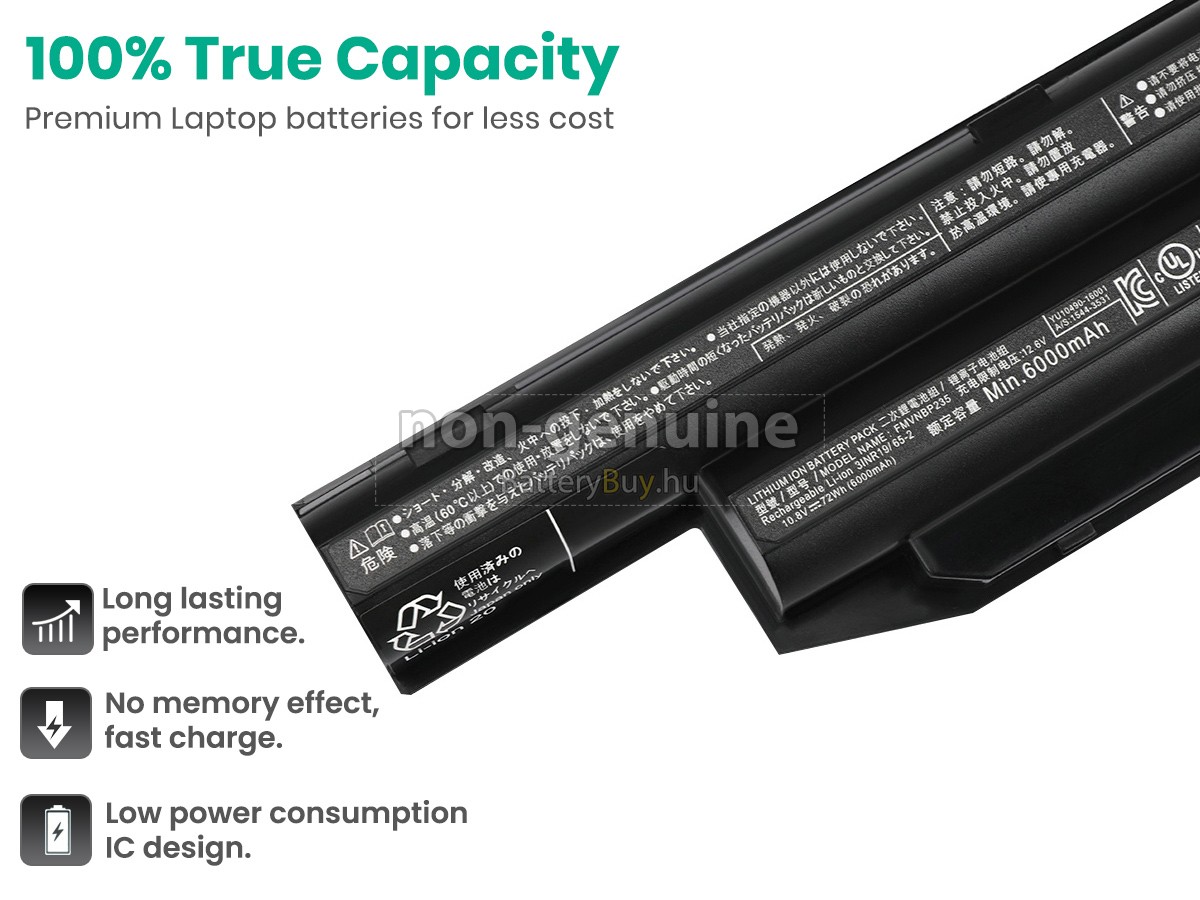 - 3 A Fujitsu FMVNBP229A akku 1:1 arányban lett tervezve, és mindenben megegyezik az eredeti akkumulátorral, így 100%-os kompatibilitást biztosít. Eredeti áramkör kialakítással, független védelmi áramkörrel, amely védelmet nyújt túltöltés, túlterhelés, túláram, magas hőmérséklet és rövidzárlat esetén.