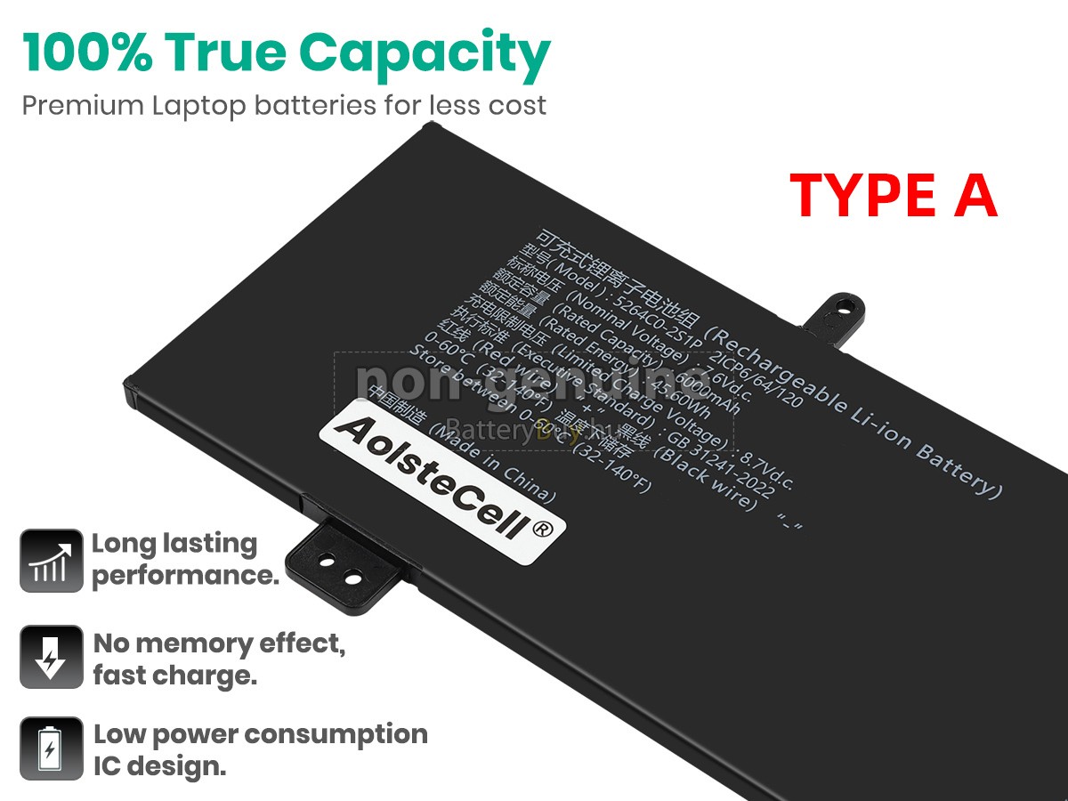 - 1 Mindegyik Haier 5264C0-2S1P akkumulátor kiváló minőségű, teljesen új lítium-ion cellákból készült, amelyeket közvetlenül a gyártó biztosít. Alacsonyabb ár, de hosszabb élettartam.