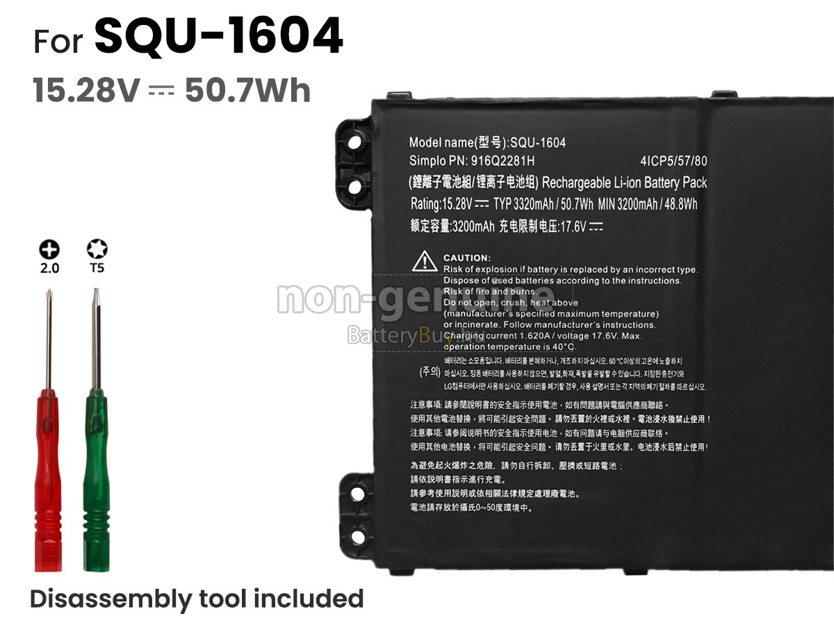 - Az Hasee 916Q2272H akkumulátor szerint 1: 1 arányosan tervezik, és mindenben megegyezik az eredetivel, 100%-os kompatibilis. Eredeti áramkör tervezése, független védelmi áramkör, túltöltés, túlterhelés, túláram, magas hőmérséklet és rövidzárlat védelme.