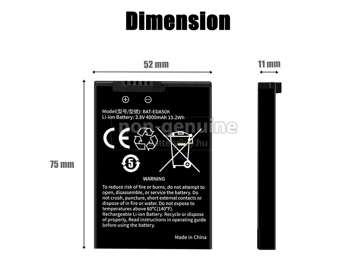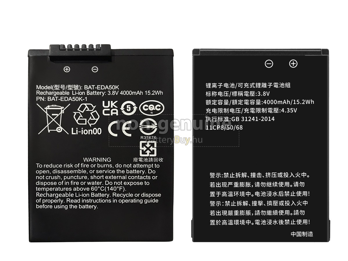 - Az Honeywell BAT-EDA50US akku szerint 1 : 1 arányosan tervezik, és mindenben megegyezik az eredetivel, 100%-os kompatibilis. Eredeti áramkör tervezése, független védelmi áramkör, túltöltés, túlterhelés, túláram, magas hőmérséklet és rövidzárlat védelme.