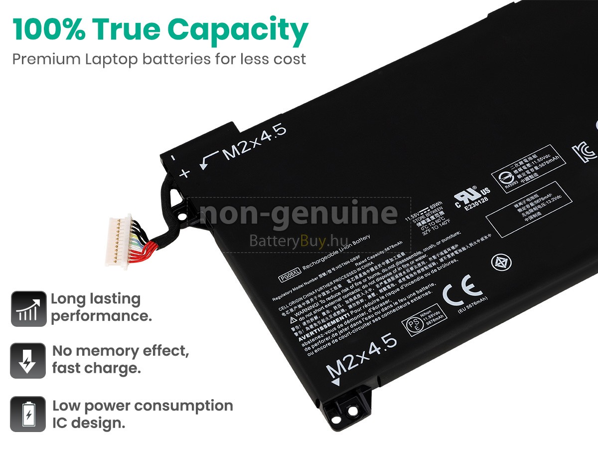 - 1 Mindegyik HP Omen 15-DH0037NQ akkumulátor kiváló minőségű, teljesen új lítium-ion cellákból készült, amelyeket közvetlenül a gyártó biztosít. Alacsonyabb ár, de hosszabb élettartam.