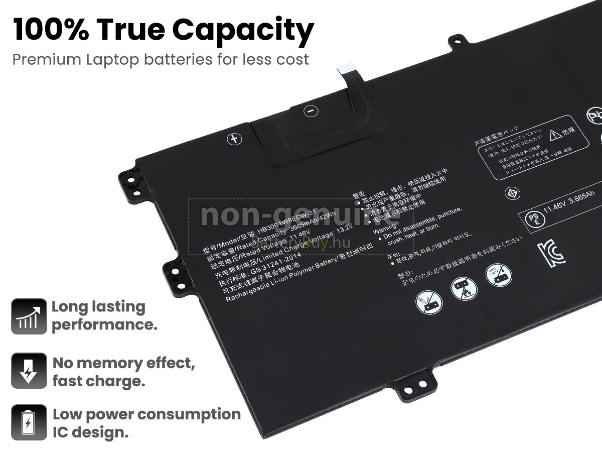Jellemzői a mi laptop Huawei EULD-WFE9 akkumulátor:- Mindegyik Huawei EULD-WFE9 akkumulátor a kiváló minőségű, teljesen új lítium-ion akku készül, amelyeket a gyártó közvetlenül biztosítja. Alacsonyabb ár, de hosszabb élettartam.