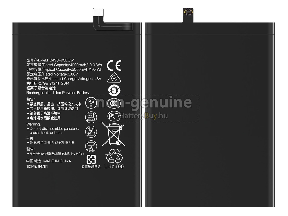 - 3 Az Huawei NOVA Y90 CTR-LX2 akku szerint 1 : 1 arányosan tervezik, és mindenben megegyezik az eredetivel, 100%-os kompatibilis. Eredeti áramkör tervezése, független védelmi áramkör, túltöltés, túlterhelés, túláram, magas hőmérséklet és rövidzárlat védelme.