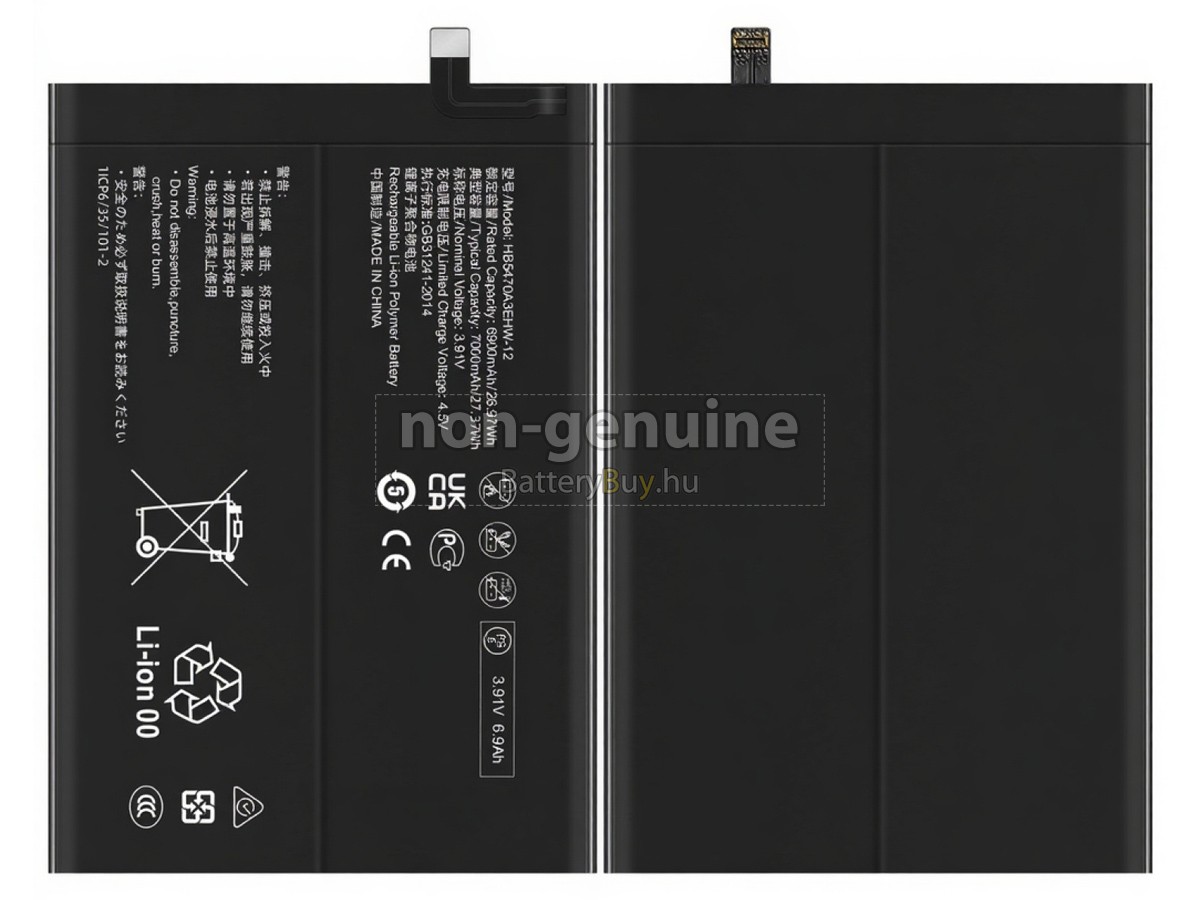 - 3 Az Huawei NOVA Y91 STG-LX2 akku szerint 1 : 1 arányosan tervezik, és mindenben megegyezik az eredetivel, 100%-os kompatibilis. Eredeti áramkör tervezése, független védelmi áramkör, túltöltés, túlterhelés, túláram, magas hőmérséklet és rövidzárlat védelme.