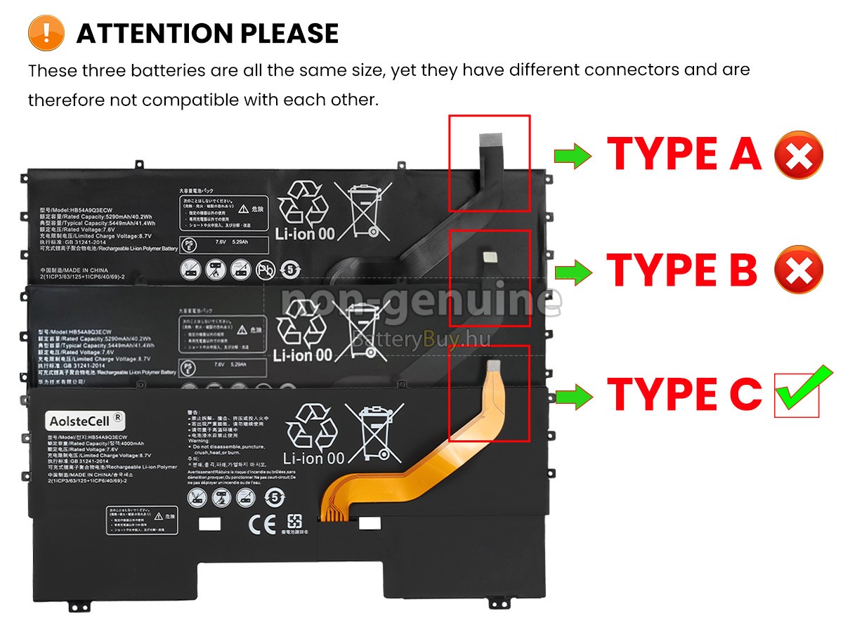 Jellemzői a mi laptop Huawei WT-W09 akkumulátor:- Mindegyik Huawei WT-W09 akkumulátor a kiváló minőségű, teljesen új lítium-ion akku készül, amelyeket a gyártó közvetlenül biztosítja. Alacsonyabb ár, de hosszabb élettartam.