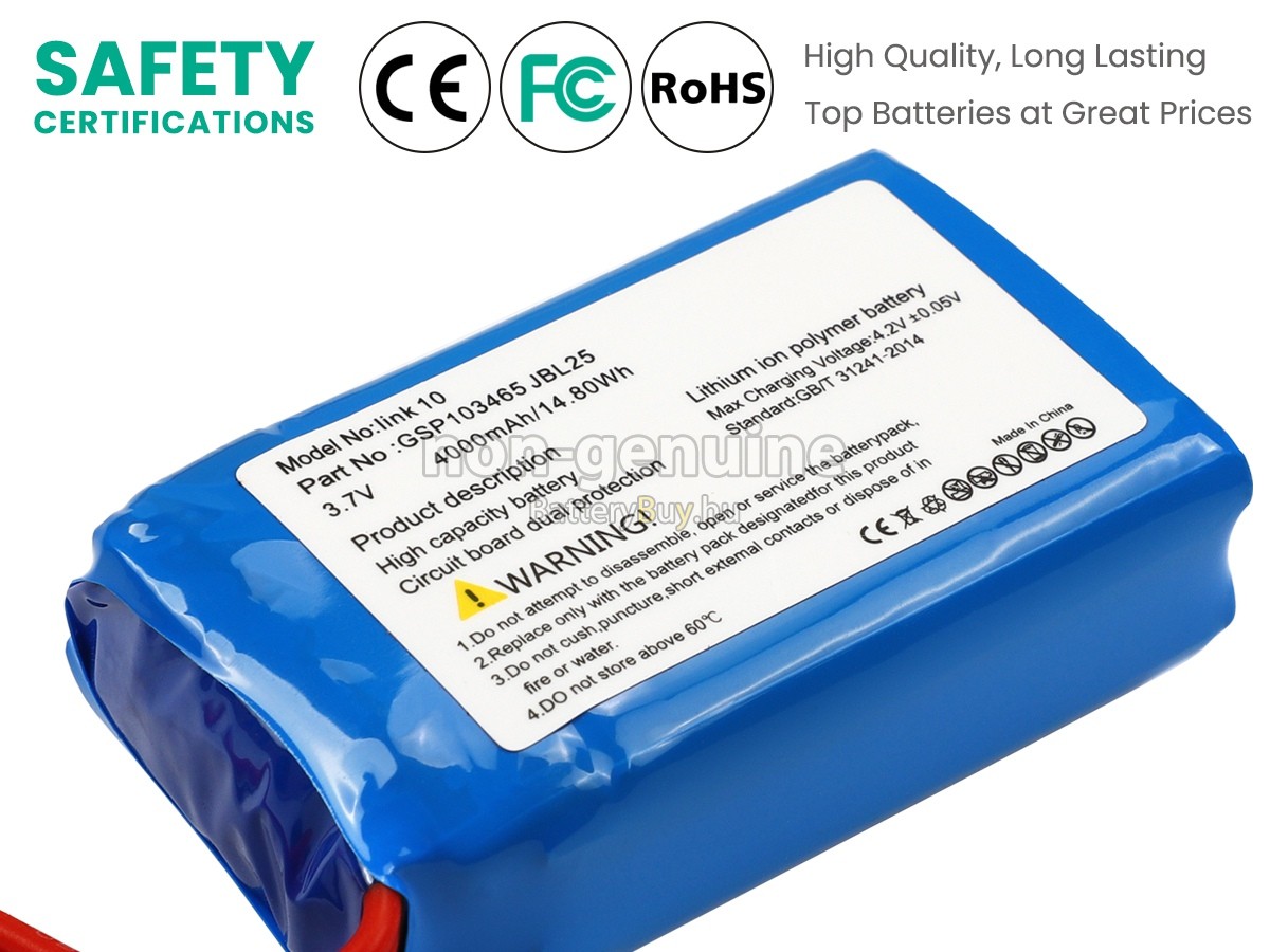 - 1 Mindegyik JBL LINK 10 hangszóró akkumulátor a kiváló minőségű, teljesen új lítium-ion akkumulátor készül, amelyeket a gyártó közvetlenül biztosítja. Alacsonyabb ár, de hosszabb élettartam.