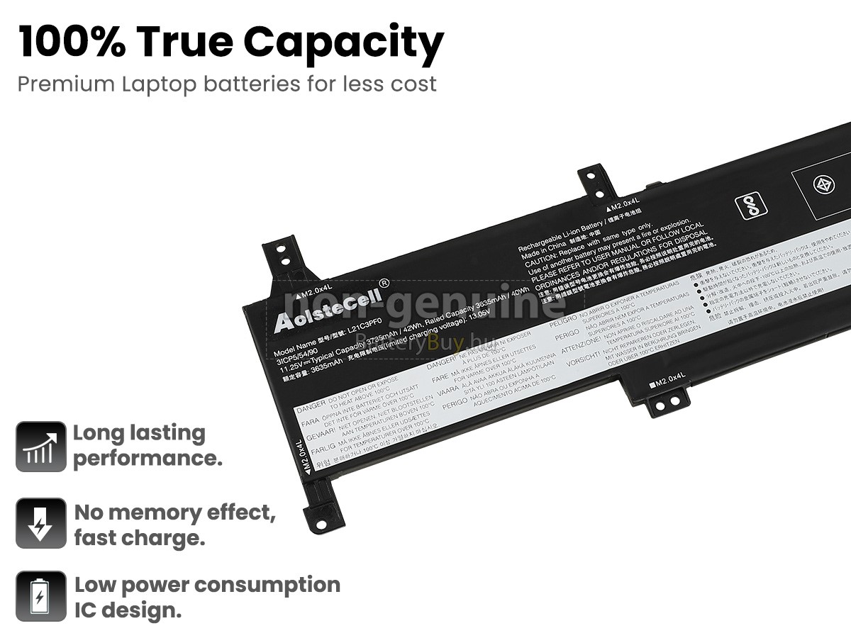 - Az Lenovo IdeaPad 1 15IGL7-82V7002JFR akkumulátor szerint 1: 1 arányosan tervezik, és mindenben megegyezik az eredetivel, 100%-os kompatibilis. Eredeti áramkör tervezése, független védelmi áramkör, túltöltés, túlterhelés, túláram, magas hőmérséklet és rövidzárlat védelme.